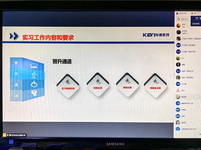 为进一步做好就业工作,向毕业生提供更加优质的择业平台,让毕业生们对用人单位的招聘需求和标准有更为深入的了解,实现毕业生充分、高质量就业,商务系电子商务专业于2023年7月24日下午17:00召开线上企业宣讲会,此次会议由福州科易软件有限公司张洛洛经理和人力资源负责人张凤成经理主持。