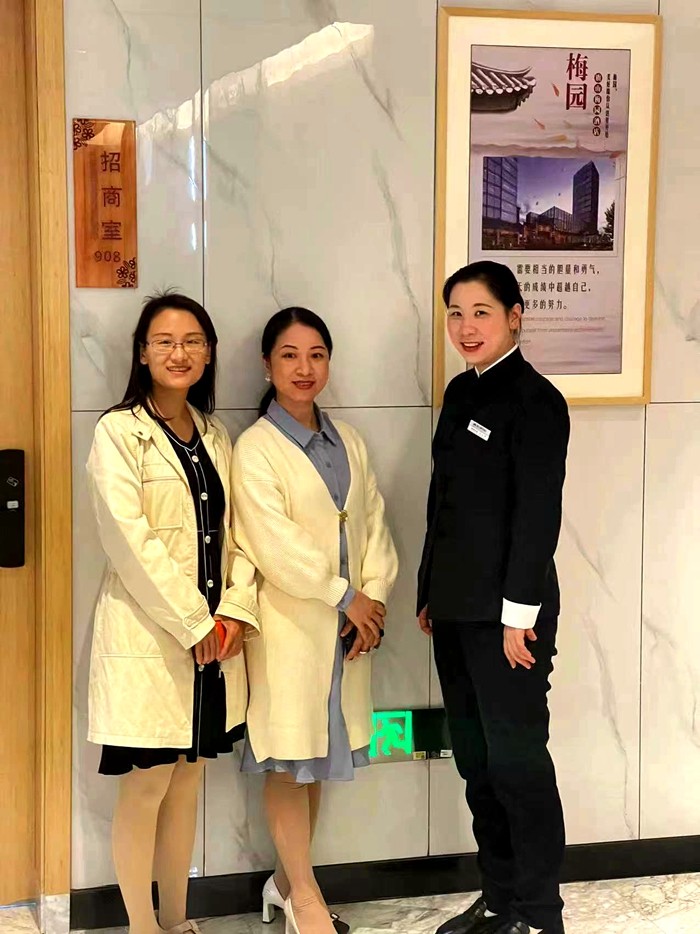 在梅园酒店负责人的陪同下,两位教师详细了解了酒店的管理体系以及员工培养机制,并就校企合作、人才培养等议题进行了深入交流。