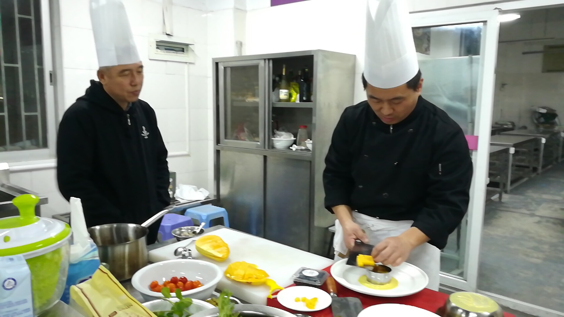 此次培训主要针对辽宁鞍山现代服务学校烹饪专业教师的个人职业需求开展一对一的培训,鞍山市现代服务学校的田宇老师主要学习热菜(闽菜及酒店创新菜);李崇老师主要学习西餐(五星级酒店的西餐菜肴);李兵老师主要学习立体冷拼; 张铭铭老师学习面点(翻糖蛋糕、虾饺、叉烧包等地方特色点心);赵洪猛、贾磊老师主要学习速写(速写花卉、人物、动物)。
