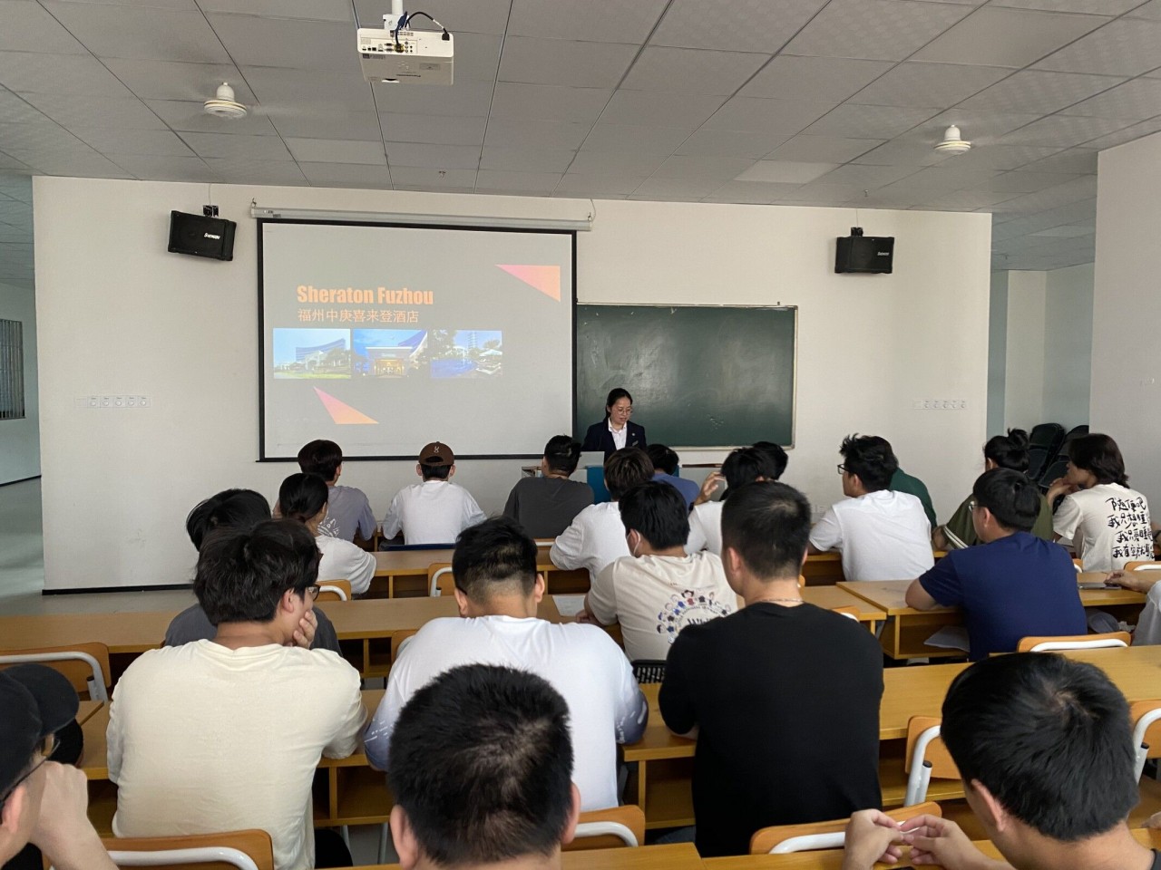 福州中庚喜来登酒店首先进行宣讲,向同学们介绍自己企业的文化背景,晋升机制以及薪资福利等。