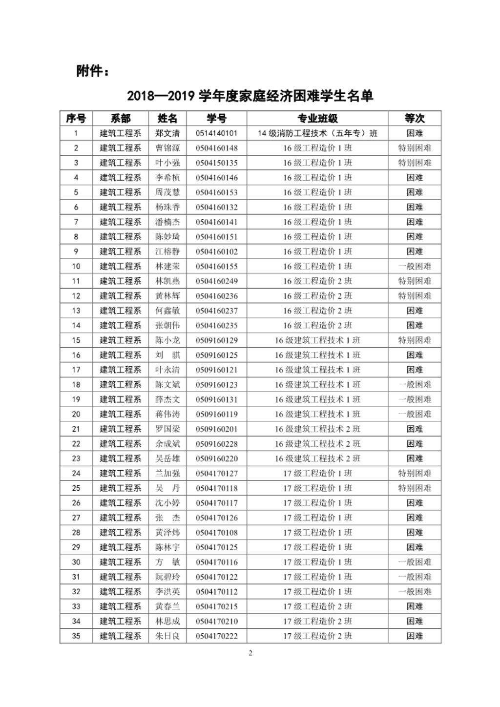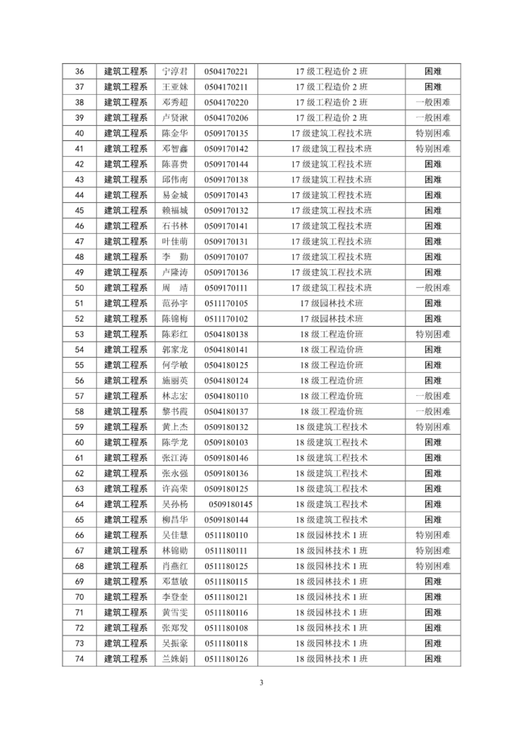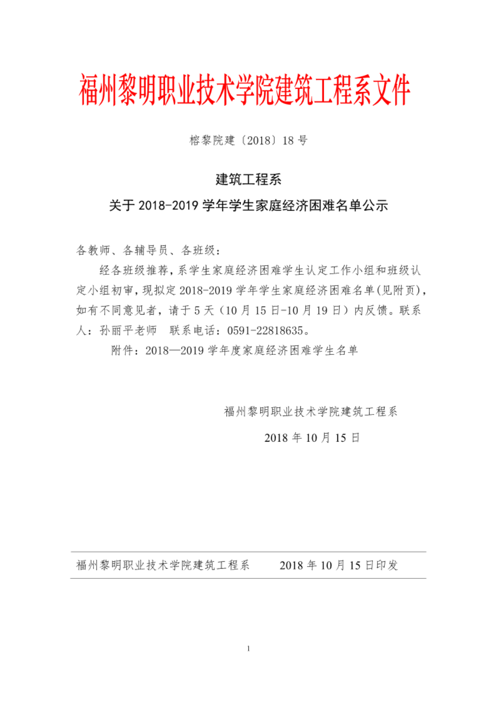 【2018】18号关于2018-2019学年学生家庭经济困难名单公示