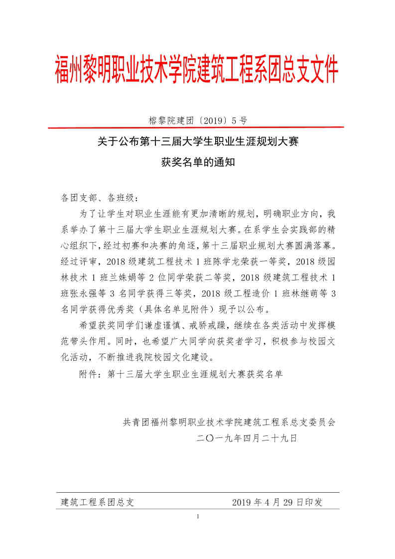 【2019】5号 关于公布第十三届大学生职业生涯规划大赛获奖名单的通知