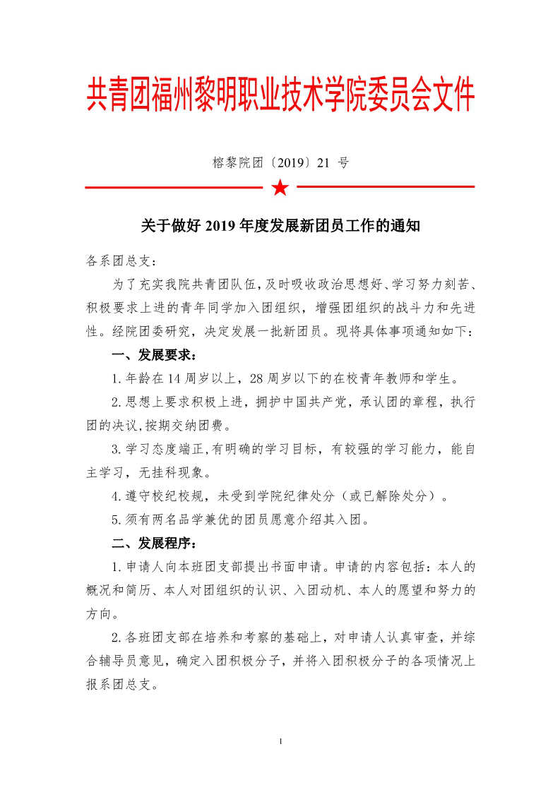 榕黎院团〔2019〕21号——关于做好2019年度发展新团员工作的通知