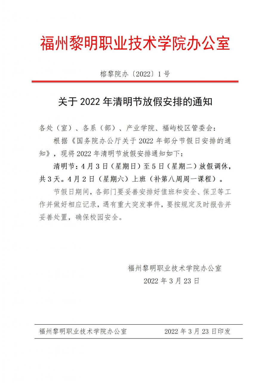 关于2022年清明节放假安排的通知