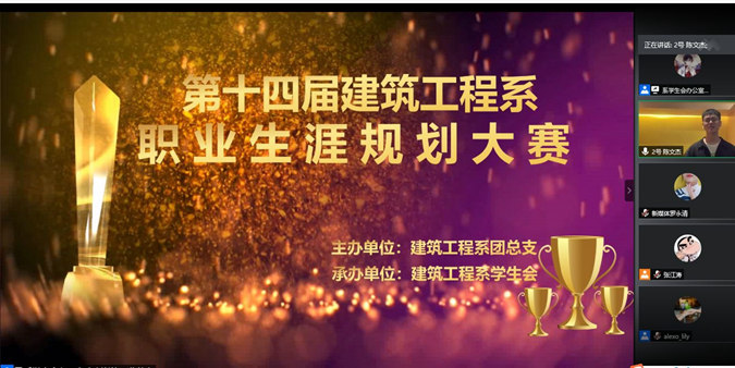 为全面普及我系大学生职业生涯规划知识,增强大学生疫情期间的求职就业能力,树立科学的成才观、择业观和就业观,同时为校级职业规划大赛选拔参赛选手。6月11日下午两点,我系通过腾讯会议举办了建筑工程系第十四届大学生职业规划大赛。系主任钟春玉老师、党支部书记孙丽平老师、辅导员谢若铖老师以及园林教研室主任江宝月老师作为评委出席了本次活动。