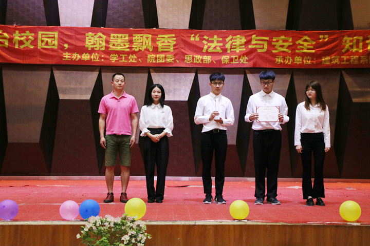 本次比赛分为四个环节,分别是风险挑战环节、必答环节、擂台挑战及季军争夺战环节、冠亚军争夺战环节。各系参赛队伍由3人组成,比赛中题型多样,在整场比赛的过程中,各系参赛选手都表现出色,他们运用所学的法律知识,向观众呈现激烈的比赛,为青少年法律知识普及做出榜样,培养了同学们对法律的认知能力,经过多轮比拼,最终成绩为:冠军:建筑工程系、亚军:药学系、季军:艺术设计系。