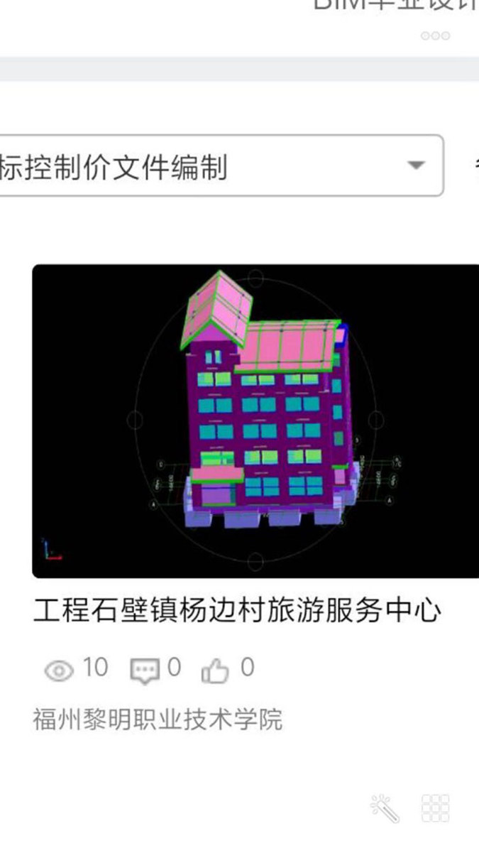 本次大赛由中国建设教育协会和广联达软件股份有限公司联合举办,参赛对象为全国19个省份46所专科在校生。荣获二等奖的D模块(基于BIM的招标控制价文件编制)是由我系王敏洁老师和王晶老师带队、蔡鸿伟、陈博宁、周显昊、黄泽炜组成的“地表最强”队设计的“石壁镇杨边村旅游服务中心”。