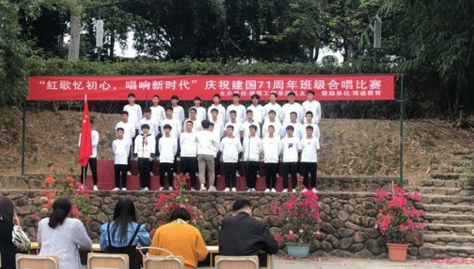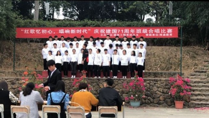 为庆祝中华人民共和国成立 71周年,大力弘扬爱国主义精神,讴歌中华民族实现伟大复兴中国梦的奋斗历程,由建筑工程系学生会文艺部主办的“红歌忆初心,唱响新时代”庆祝建国71周年班级合唱比赛于11月24日下午在后山主席台拉开帷幕。此次比赛由我系2019、2020级学生分九个方队组成。