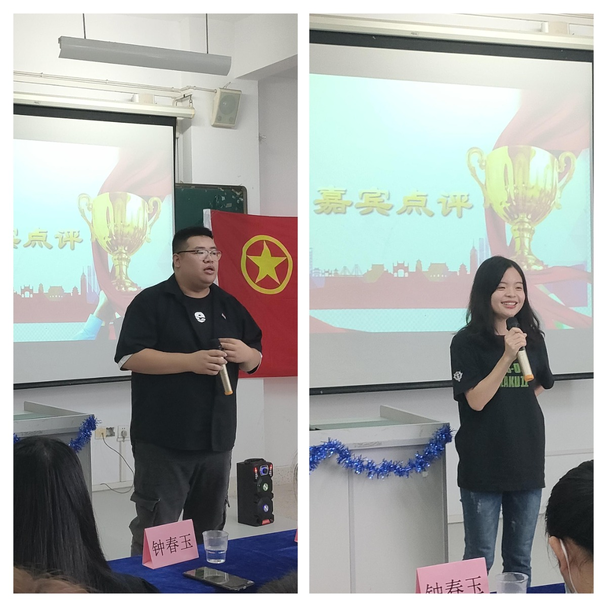 亲临现场的嘉宾有系主任钟春玉老师、团总支书记孙丽平老师、团总支副书记谢若铖老师、辅导员郑晓琦老师和系部两委一会学生干部们。