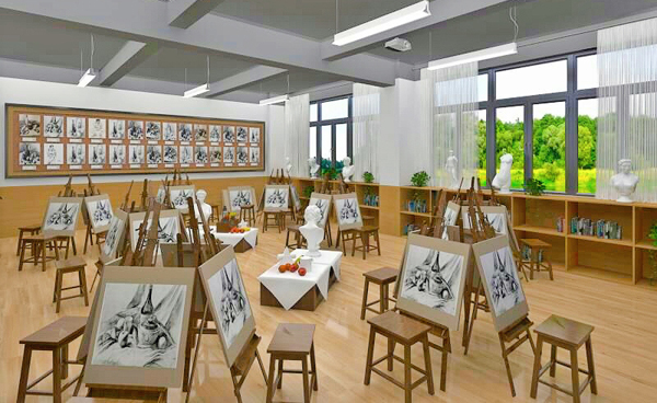 实训室功能:实训室配有静物灯、画架、景物台等教学设备。承担《结构素描》《色彩写生》等专业课的实训任务。实训室为教师和学生提供了较真实教学环境,通过实践锻炼培养学生艺术创作方面的表现能力。