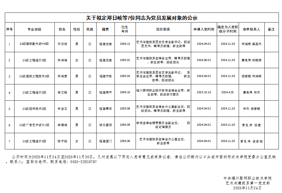 关于拟定邓日岐等7位同志为党员发展对象的公示