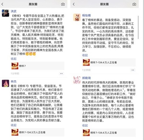 观看结束后,大家通过QQ、微信朋友圈等方式积极交流、分享心得体会。“节目中的每一个镜头、每一个场景、每一个故事,都彰显着党的二十大代表们坚定的理想信念、扎实的工作作风、一心为民的高尚情怀,他们的先进事迹深深感染着我。作为一名新时代的党员干部,一定对标先进、见贤思齐,始终心系“人民事”、肩扛“国家责”、勇做追梦者,把个人理想自觉融入党和人民的伟大事业之中,推动党的二十大精神、全国两会精神等贯彻落实到教育工作中。”支部书记林鸿燕谈到。园林专业的江宝月老师表示,“观看《榜样7》后,身为曾经的农林生,令我印象最深刻的是林占熺研究员。在林老师身上,我看到了共产党人坚贞忠诚、信念崇高、不辞辛苦、笃定致远、勤勉奉献的品质。无论是顺境还是逆境,林老师为人民服务的理想信念始终未变,他一头扎进祖国的基层大地推广菌草这项新技术,帮助贫困群众脱贫致富。作为新时代的党员,我们更该积极响应时代号召,做“林占熺”式合格党员,在学习与实践中坚定理想信念、筑牢奋斗筋骨、勇于改革创新,在追求崇高理想的过程中造福群众,传播无私大爱。”