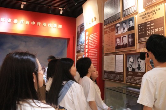 随后,大家一起参观了省委旧址纪念馆内珍贵的历史资源,一起追寻中共福建省委的红色足迹,学习红色历史。团总支学生干部陈富权同学向师生们进行讲解,讲述先烈们的故事,他说到,“1944年至1946年,中共福建省委机关从南平建阳转移到福州官烈村,领导全省人民开展革命斗争。纪念馆分为福建地方党组织的创建、苏区时期的省委活动、艰苦卓绝的三年苦斗、组织抗战与自卫反顽、开展爱国游击战迎接解放等五个部分。”师生们通过馆内珍藏的先烈遗物和重要党史事件了解到了先烈们的革命情怀,感受到了先烈们铮铮铁骨战强敌、血肉之躯筑长城、前仆后继赴国难的爱国热忱。