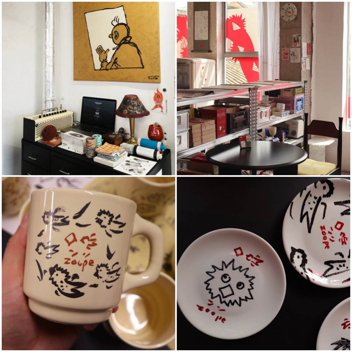Zoope找平甜品坐落于鲤城区大寺后巷,这座由刘灿强及其团队亲手设计、施工的三层小楼,既是甜品店,也是充满艺术气息的设计展示空间。一楼为顾客提供精致的甜品与饮品,二楼则巧妙融合了刘灿强的平面设计作品与文创产品。旧报纸制成的凳子、从惠安老家搬运改造的石凳等创意家具,在怀旧与创新的碰撞中焕发新生,展现了校友将专业设计与商业实践结合的卓越能力。