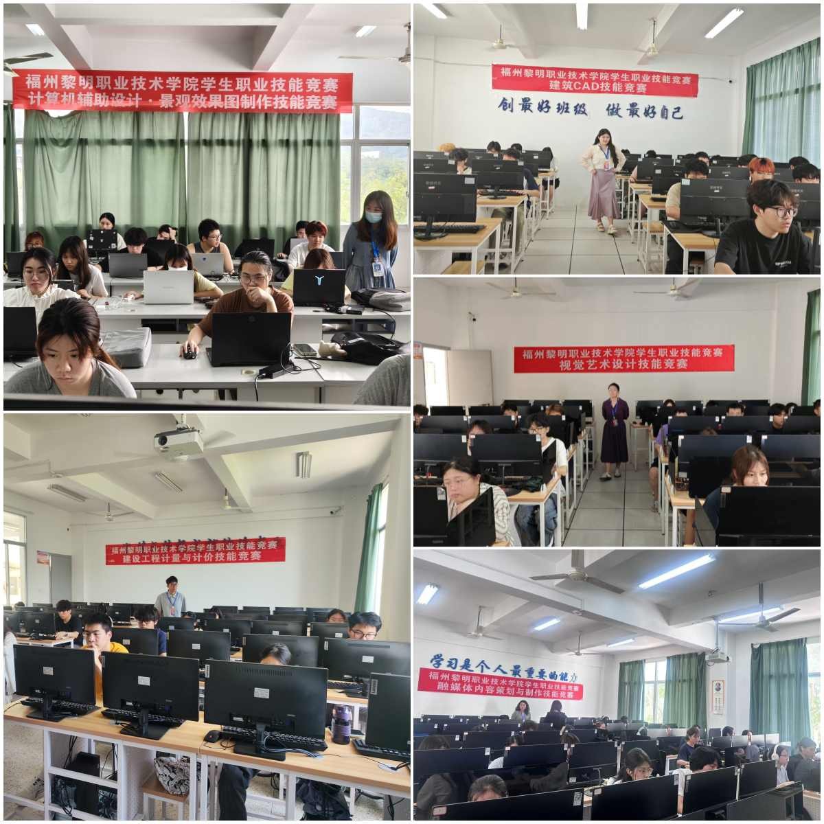 本次竞赛分为展示类项目和竞赛类项目两大类。展示类项目包括环境艺术设计、平面设计大类展示、三大构成成果展示以及设计创意思维综合项目技能展示,充分展现了学生们扎实的专业功底和艺术创造力。竞赛类项目则涵盖了计算机辅助设计-景观效果图制作、建设工程计量与计价、建筑CAD、融媒体内容策划与制作、视觉艺术设计多个赛项,参赛选手们以饱满的热情和专业的素养,在赛场上展现了出色的实践能力。
