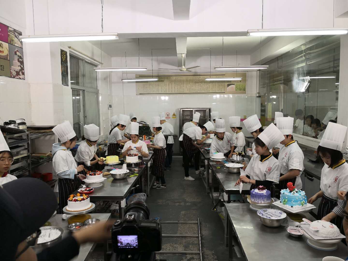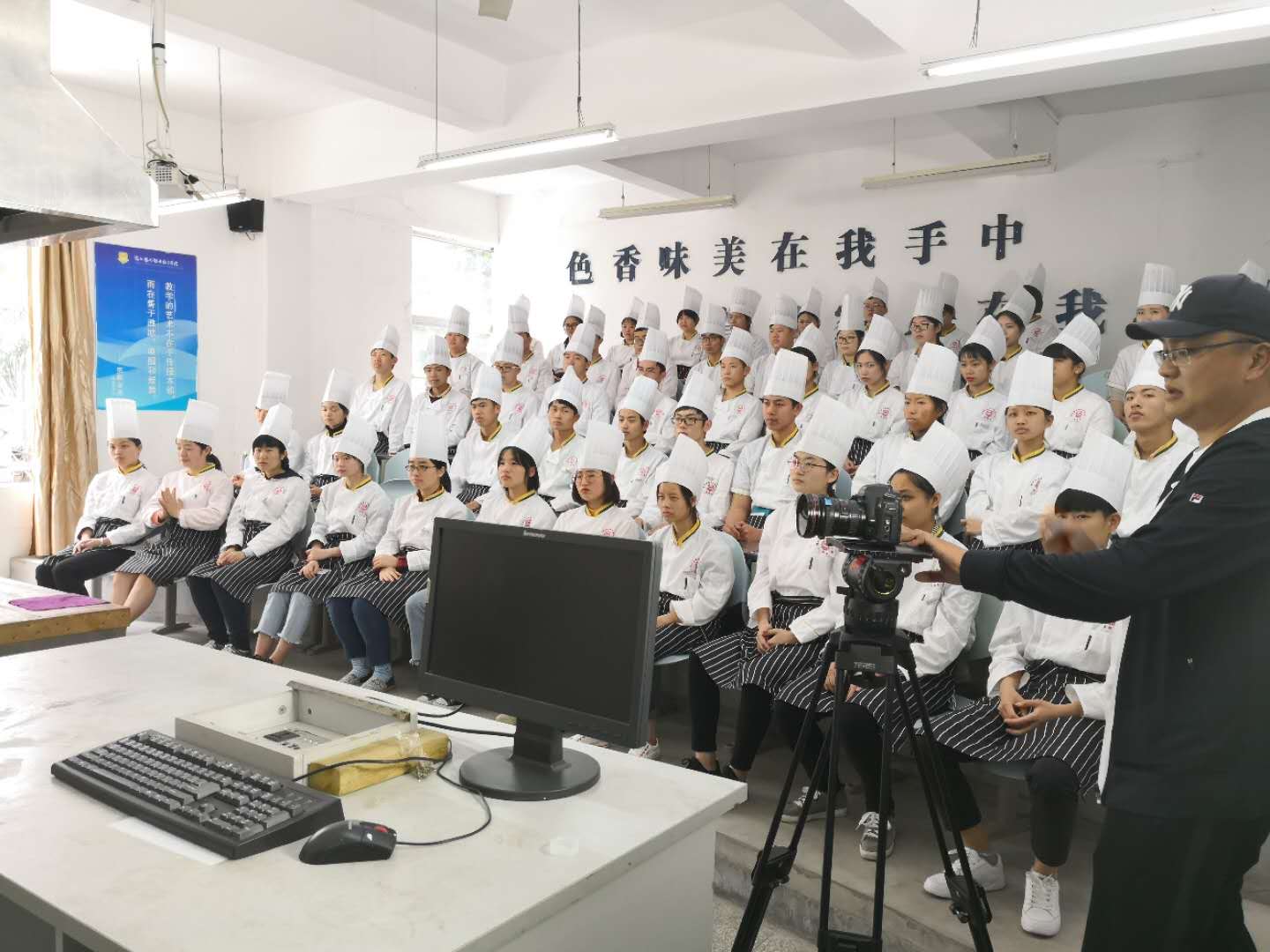 3月31日上午,烹饪系全体师生总动员,准备参与 “大学之道”的栏目拍摄。在此之前,我们已经为“大学之道”的拍摄做了充分的准备。今天的拍摄主要包括5个实训室的上课场景,分别是杨丽红老师的翻糖制作,杨金秋老师的雕刻、面塑,张世明老师的果酱画、冷拼,林琴老师的生日蛋糕制作以及胡丽强老师的中餐烹饪实训,同学们身着整齐的工作服和工作帽,认真的进行各项操作,体现了我系学生良好的素质。接下来是对冯飞主任的采访,冯飞主任重点介绍了烹饪系专业的发展历程,以及专业在发展中一直秉承的“爱的教育和实践教学两手抓”的教育理念。对烹饪系的实训基地之一五洲佳豪大酒店也进行了实地拍摄,同时对我系优秀毕业生薛伟强,现任五洲佳豪大酒店闽菜炒锅厨师,兼任烹饪系中餐实训教师进行了深度采访。整个拍摄过程井然有序,圆满完成了学院的拍摄工作。