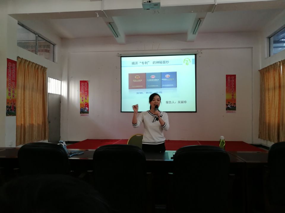 2019年10月24日,由我院唯一一位有三项发明专利授权的吴丽珍老师为烹饪系的学生开展了题为“揭开专利的神秘面纱”的专题讲座。此次讲座,本着普及专利知识的初衷,从近期的热点话题“二维码专利、华为专利诉讼案件”出发,围绕知识产权的概念和范畴;专利的概念、种类及申请专利的作用;目前省内专利资助政策、福建省高校专利受理情况及相关文件;专利的授权条件及如何挖掘专利;专利信息检索方法并进行案例分析等五个方面展开。