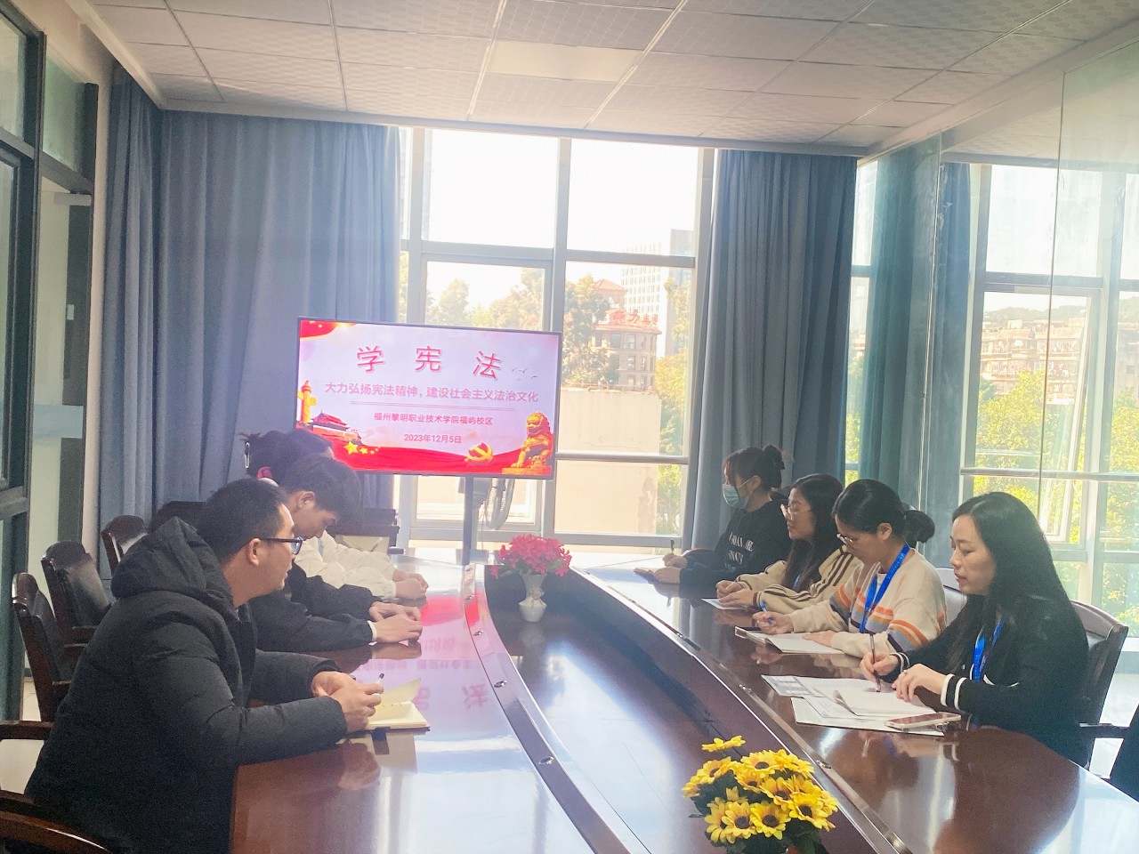 为深入学习贯彻党的二十大精神,贯彻落实习近平法治思想和习近平总书记关于宪法法治教育的重要指示精神,2023年12月5日,我系组织开展“大力弘扬宪法精神,建设社会主义法治文化”主题学习会。本次学习会由党支部书记罗钰堂组织。