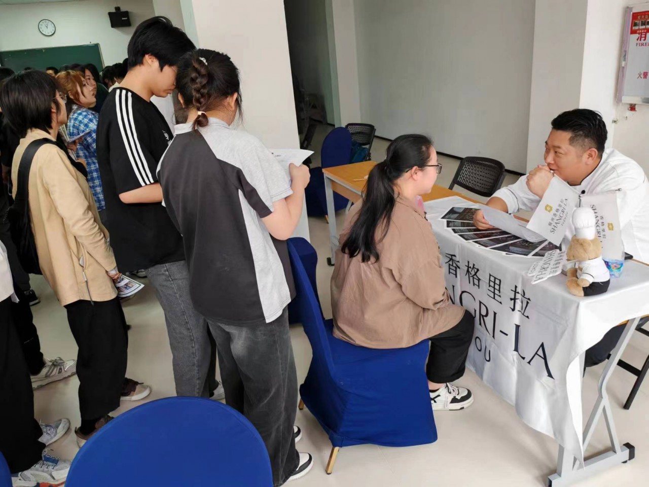 学生在聆听完讲座后就与心仪的企业进行了一对一的沟通。招聘会现场人头攒动。 部分学生与用人单位当场达成了初步意向。同学们认为这种校园招聘会非常高效,也非常安全,感谢学院提供的平台。企业方也非常期待与我系的合作,表示烹饪系培养出来的学生技能扎实,踏实肯干,非常的放心。