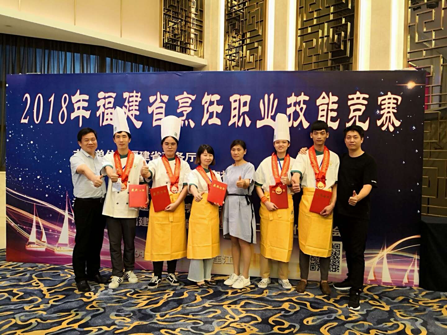 我院烹饪系师生在连江举办的2018福建省烹饪技能竞赛中获得佳绩:胡丽强老师热菜组第七名,获金奖,杨丽红老师面点组第一名获金奖,郑洁面点组第三名获金奖,张雨彤银奖。