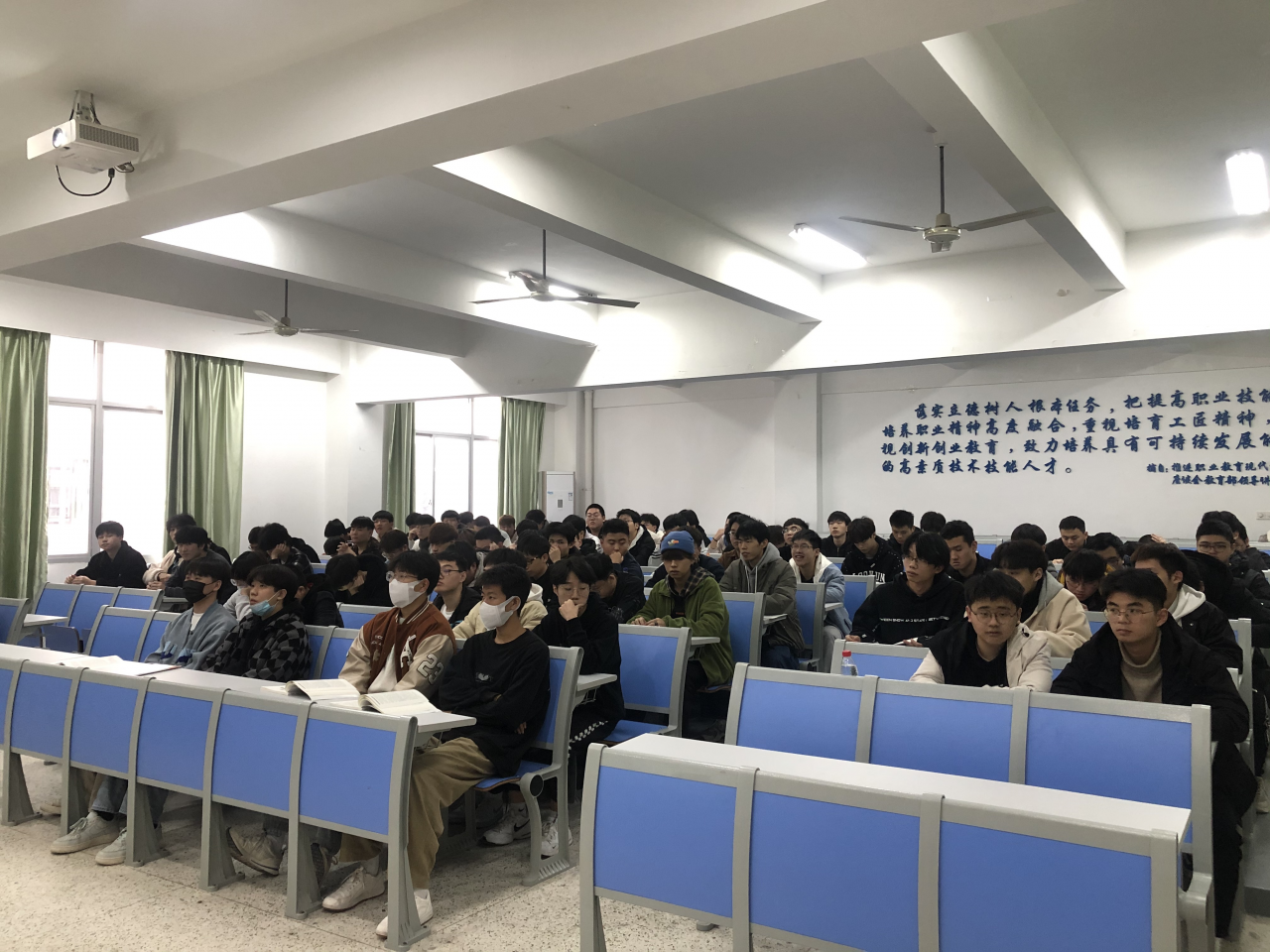 为了贯彻落实中组部、中宣部、教育部《关于领导干部上讲台开展思想政治教育的意见》文件精神,进一步加强和改进我校大学生思想政治教育工作,更好地发挥学校思政课在立德树人方面的重要作用,落实校领导“上讲台”有关要求,12月23日下午,副院长杨光舟以“谱写乡村全面振兴新篇章”为题,为我院20级建筑工程技术等专业共计100多名学生讲授了一堂精彩的思政课。