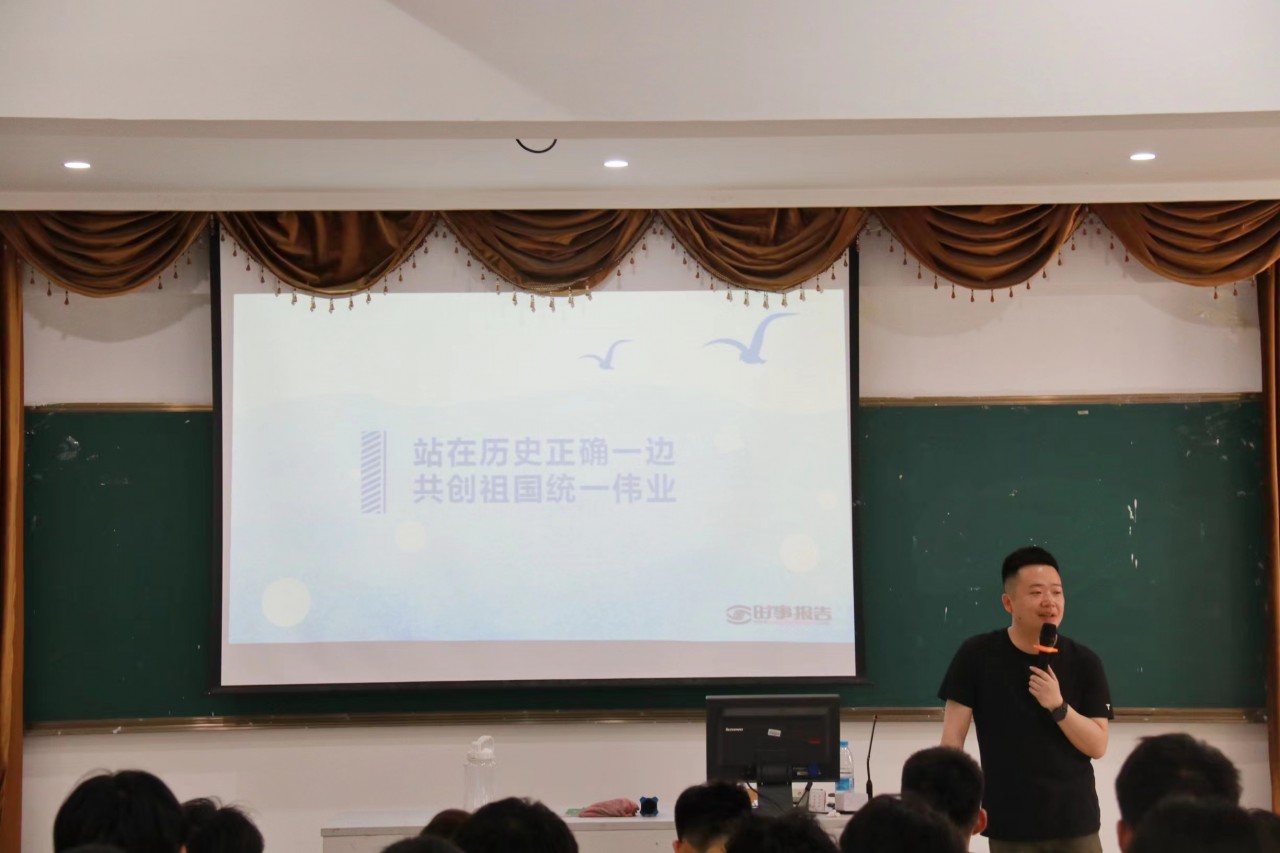 4月26日下午,院党委副书记王新华深入思政课堂,为21级电子商务专业学生讲授题为《站在历史正确的一边 共创祖国统一伟业》的《形势与政策》课。