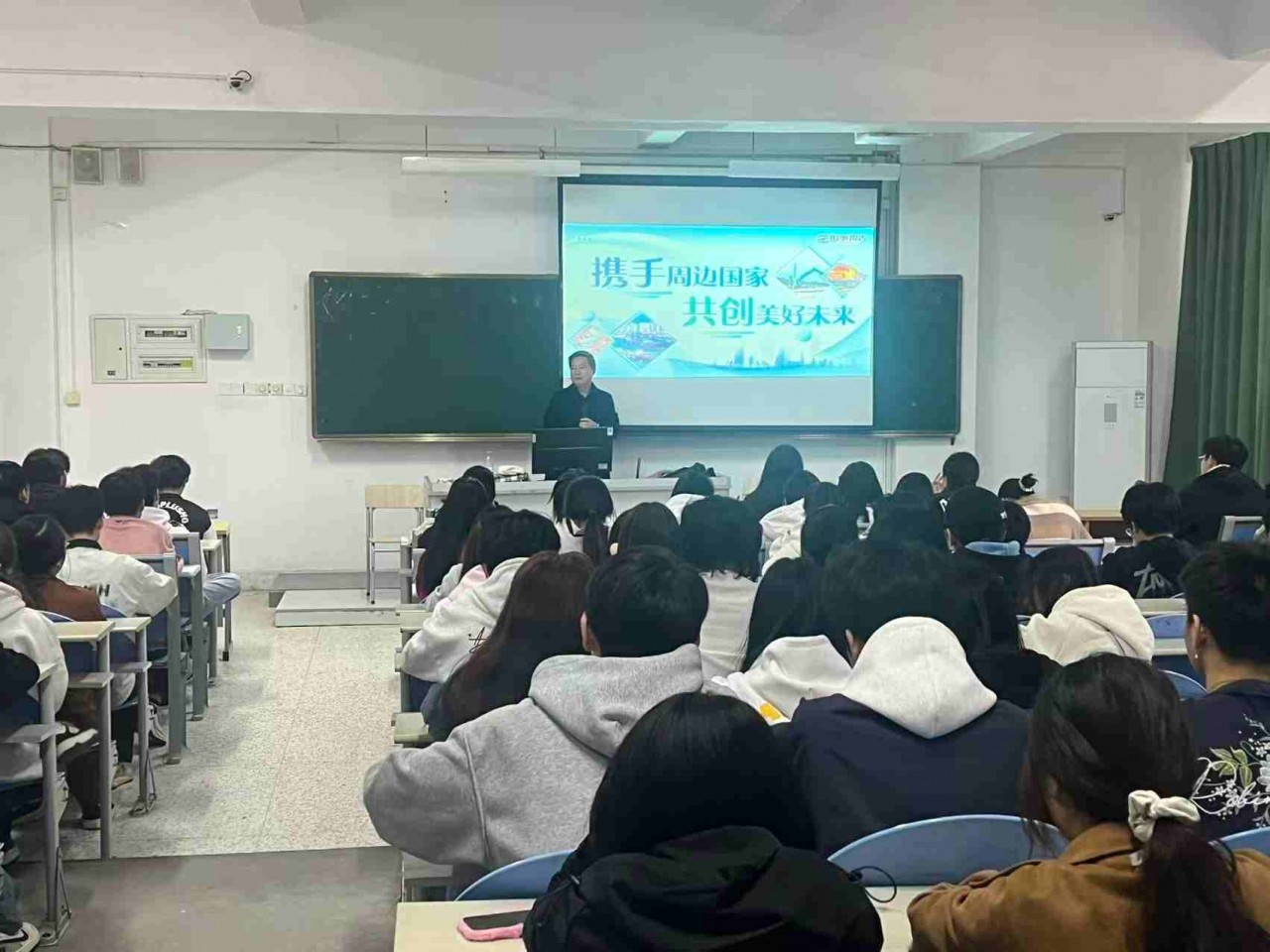 党委书记廖诗忠、党委副书记刘鹏、工会主席王新华、宣传部部长陈玉池以《携手周边国家,共创美好未来》为题,给药学系、艺建系、曼奇立德的学生授课,从新时代外交战略布局出发,阐述周边地区在总体外交中的重要地位,回顾“亲诚惠容”外交理念的创新与实践。结合我国与东盟、南亚国家在政治、经贸、人文、安全等领域的进展,解读“周边命运共同体”的现实意义,引导学生理性看待周边关系的复杂与战略属性,明晰机遇与安全挑战,拓宽国际视野,增强大国担当意识。