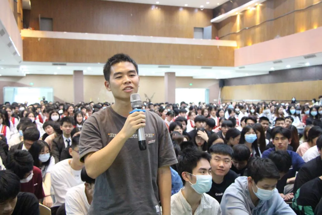 其次,王董以玫瑰花为例子,阐述了喜欢与爱的区别,分享自己身边的故事。同时也鼓励在座同学分享关于“爱”的故事,在整个交流环节,同学们各抒己见,积极分享自己身边“爱”的小故事。王董坚持奉行“爱是教育的核心”,用一言一行向学生表达爱,让爱在心中流淌,让爱在校园中升华。王董极具感染力的讲话赢得了在场全体师生雷鸣般的掌声,让人受益匪浅。