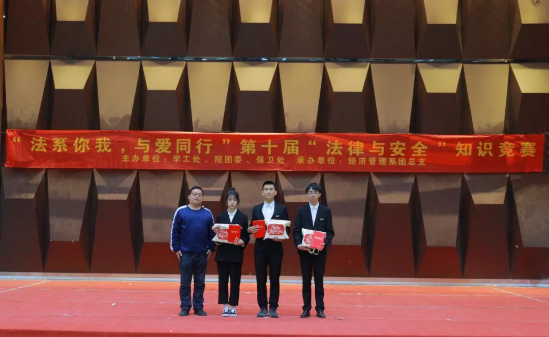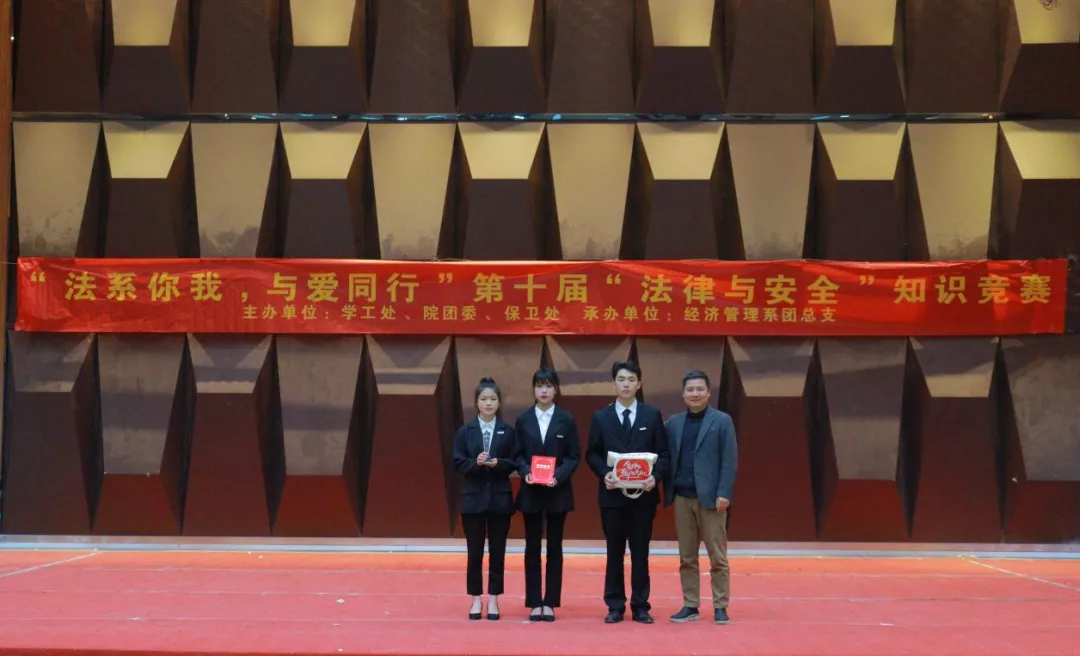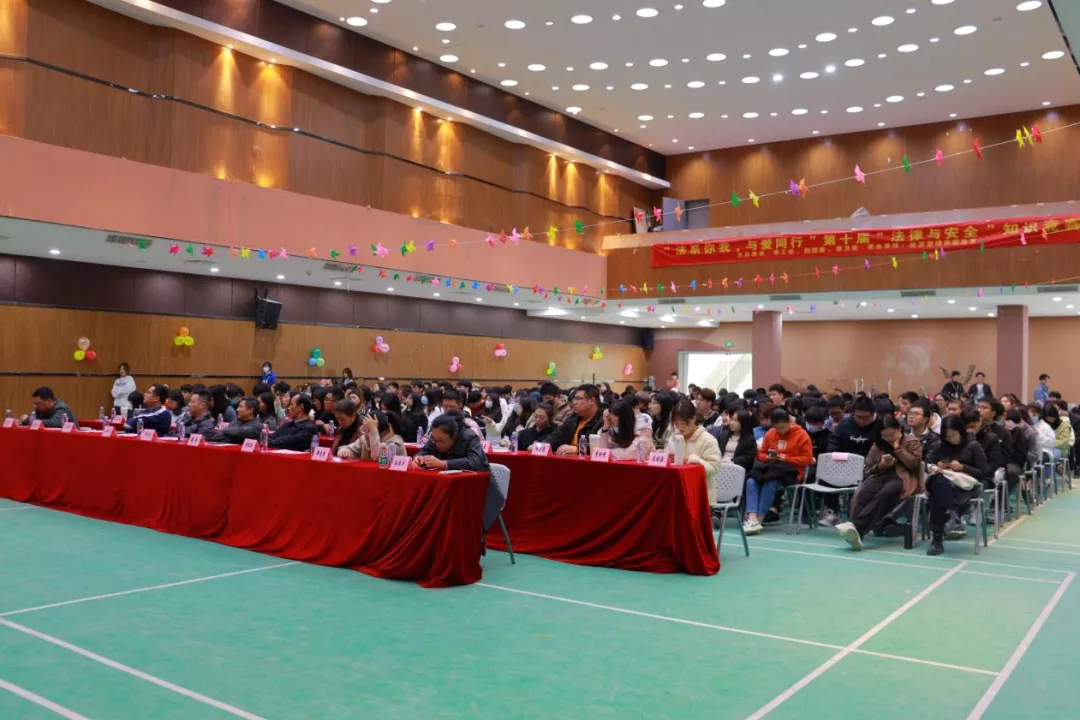 为贯彻坚定不移走中国特色社会主义法治道路的要求,坚持以习近平法治思想为指引,全面加强对大学生群体的对法律学习宣传力度,不断提升大学生法治意识与法治素养,培养忠实崇法、自觉守法、坚定护法的大学生。2021年12月9日下午14时,由学工处、团委、保卫处主办,经济管理系团总支承办的“法系你我,与爱同行”第十届“法律与安全”知识竞赛在学术报告厅举办。莅临本场比赛的领导有:院党委书记廖诗忠教授,副院长魏洪老师,院党委副书记王新华老师,出席本次比赛的还有各处室代表、党支部书记、学工处干部以及全体辅导员们。