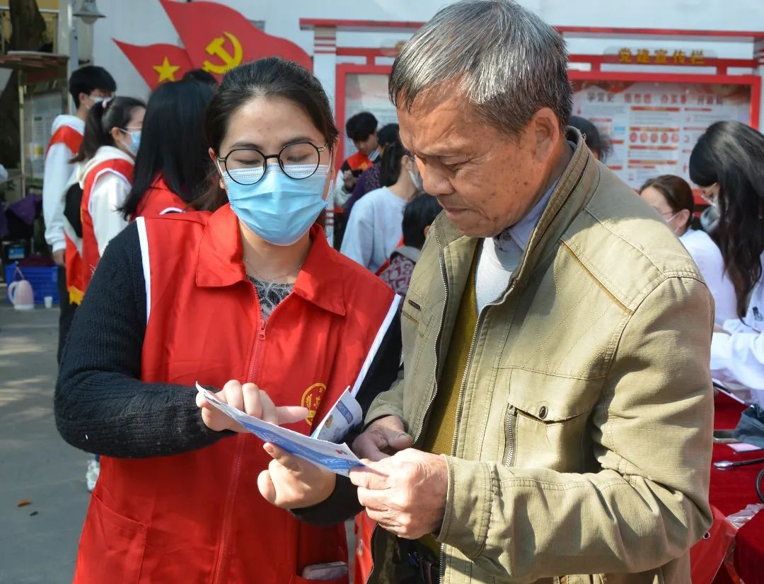 活动一直持续到11点结束,学生党员志愿者李燕榕说:“我们所学的专业知识就是为老人服务的,能够把健康知识讲给他们听,真的很开心。”带队老师陈超说:“老年人容易得高血压等疾病,我们就给老人们讲解何为高血压?高血压疾病发病相关因素、高血压疾病的危害、引起高血压疾病的原因等知识,给他们送去健康知识,帮助老人预防老年疾病。同时,我们也想让学生多出校门锻炼,在实践服务中运用知识,实现自我价值,找到自身的不足。”-8wcXY.jpg)