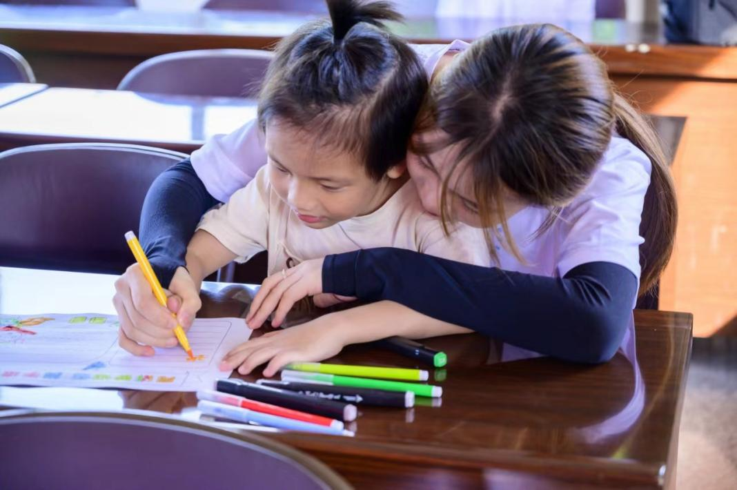 7月18日,“蒲公英”志愿队成员走进双龙村的游戏天地,为当地的儿童们开展“一字一句普通话,千言万语绘中华”的推广普通话手抄报活动,以加深乡村学生对普通话重要性的认识。