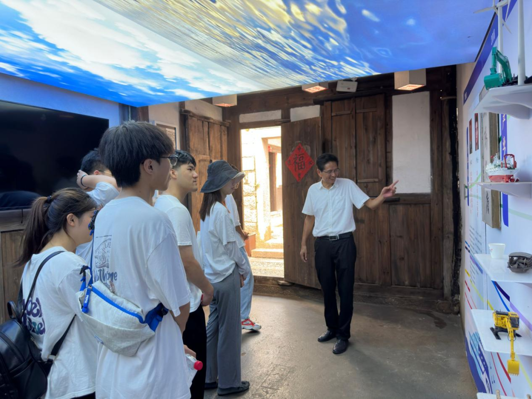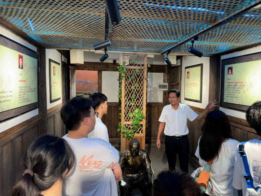 第二站,一行人来到了“南岭乡贤馆”,聆听古今故事,在古建筑中沉浸式感受这个小村落的“不平凡”。在乡贤馆内,实践团队的师生一同参观了大山村里走出的各行各业杰出代表的事迹文化墙,他们为家乡建设助力,为党和祖国的发展贡献自己的力量;另外,古厝的创建人也特别注重对子女的文化教育,将书塾设于家中,希望子孙后代好好读书,并将此作为家风作为传承,后来南岭人也与时俱进紧跟时代精神提出自己“三牛精神”,繁荣群众文化,为乡村文化振兴注入了强大的精神动力。
