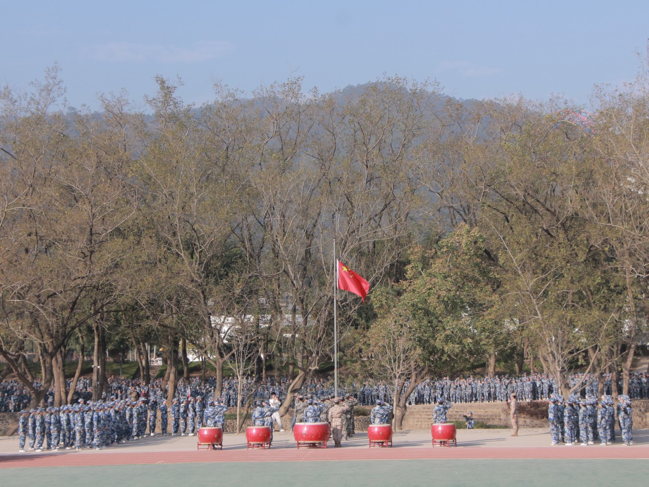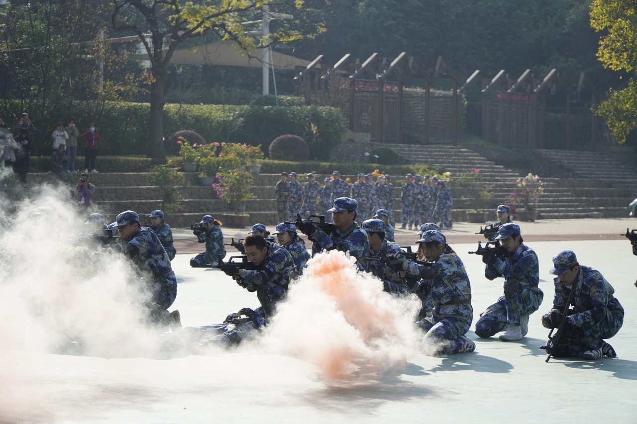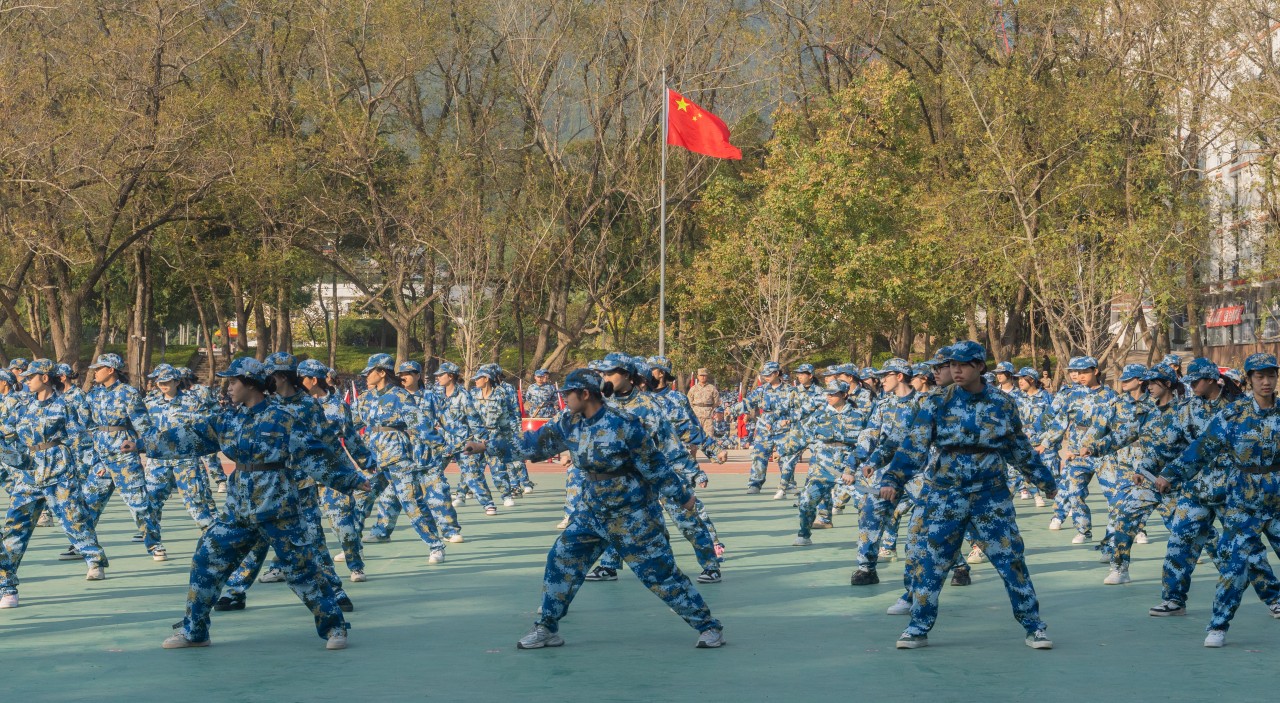 薄汗透军衫,暖阳晕迷彩,一幅军训画卷在黎明徐徐铺展。12月10日上午,历经二十一天的磨练,我院地球村校区2023级学生军训会操暨表彰大会在后山操场如期举行 。院领导王苏华、范超峰、魏洪、刘鹏、王新华及承训部队领导出席大会,各处(室)、系(部、产业学院)负责人,各系党支部书记、全体学工处干部、辅导员、承训教官,以及全体2023级新生参加大会。此次大会由学生工作部(处)部长陈伟伟主持。