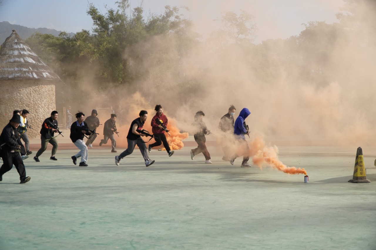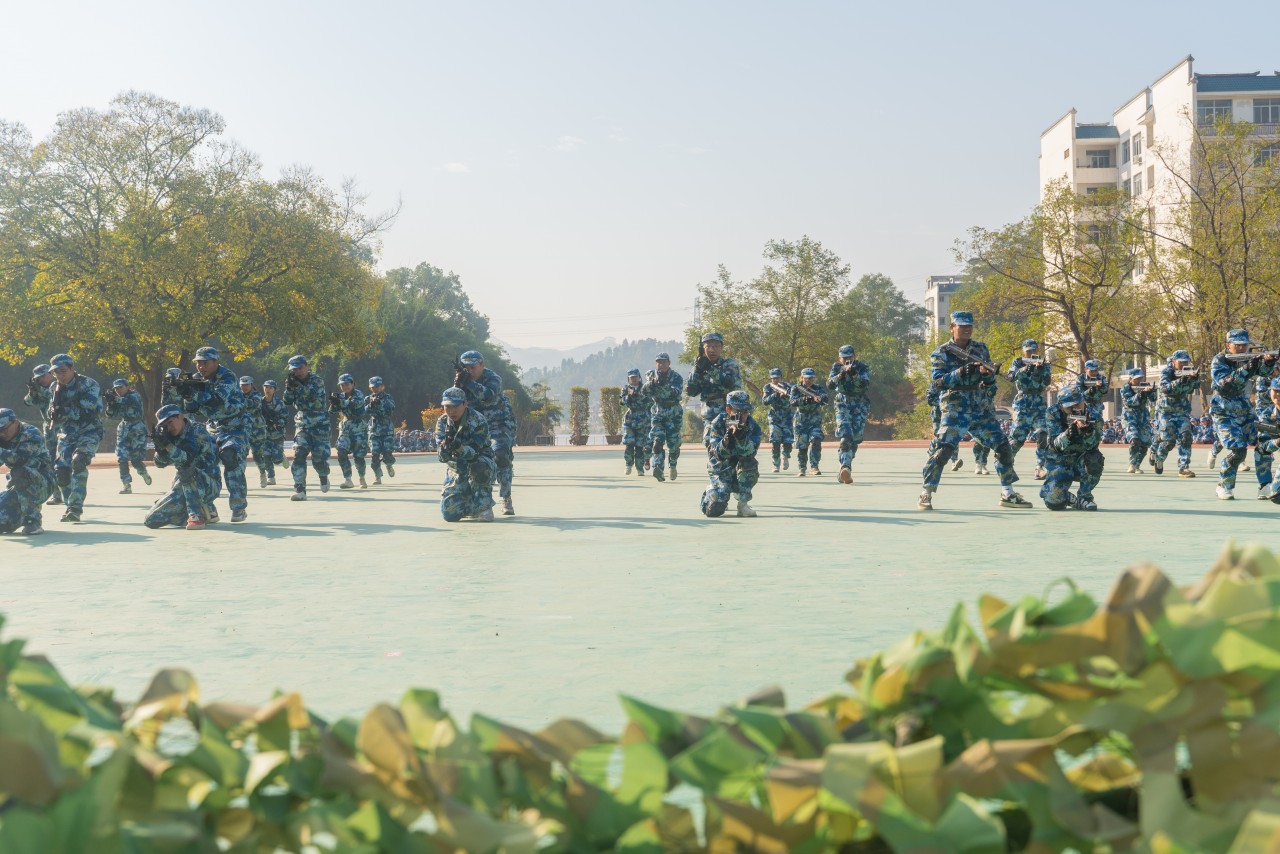 战术会演是军训汇报表演的一个重要环节。现场模拟战争环境,运用战术队形,展示了“流血流汗不流泪”的军人本色。实地红蓝军队对抗,让全场为之欢呼。