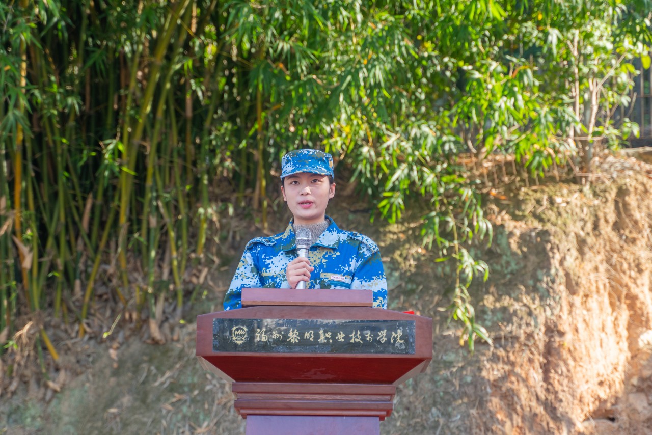 新生代表是来自一分队十五连的卢珊。她表示“生逢其时,重任在肩。要坚定意志,百折不挠”。此次军训不仅仅提高学生的体质,更贯彻了我院“爱的教育”办学理念,培养了大家宽广博爱的胸怀,艰苦奋斗的作风。而这些优秀品质,对大学生活乃至一生都会产生积极的影响。