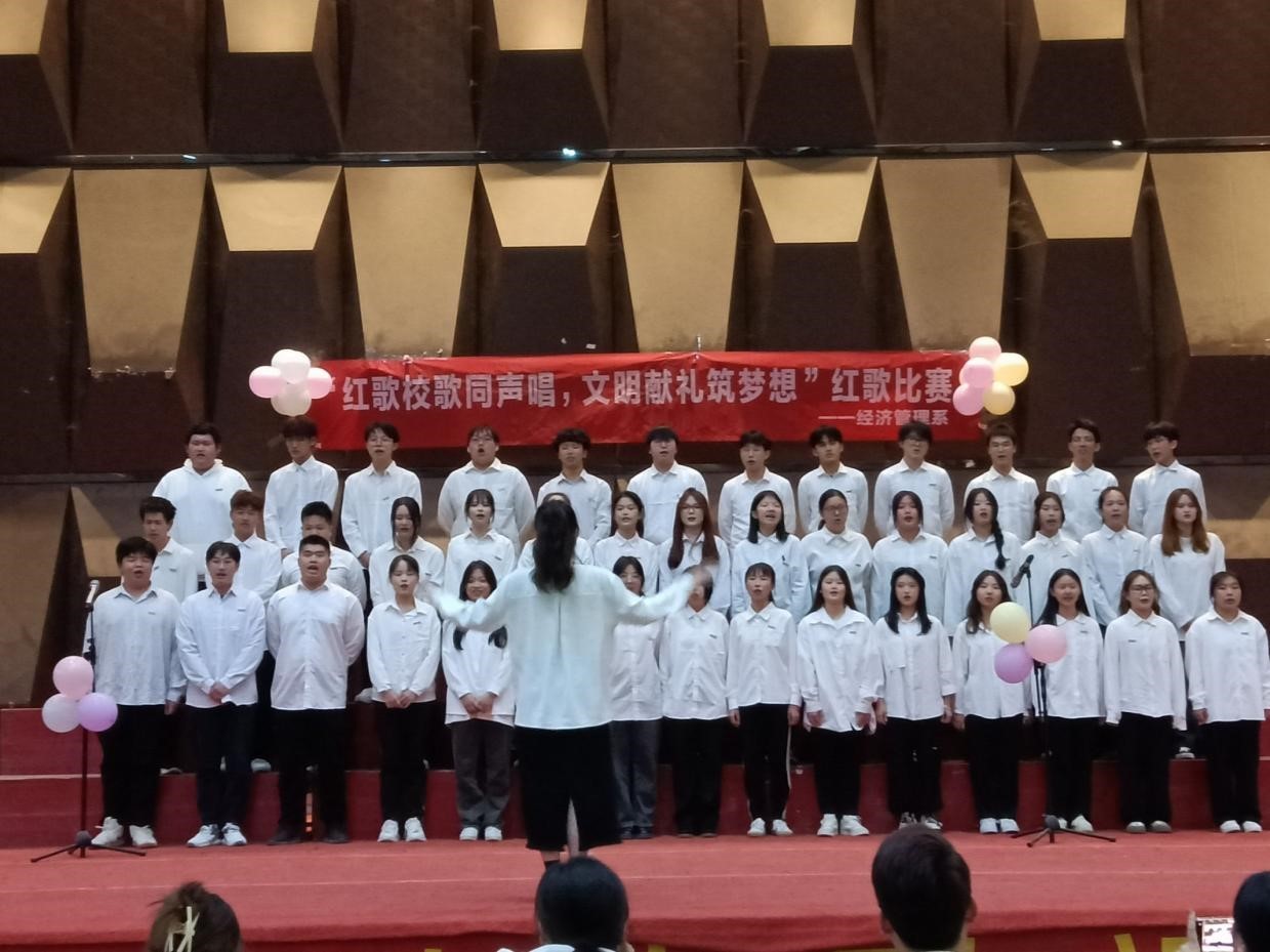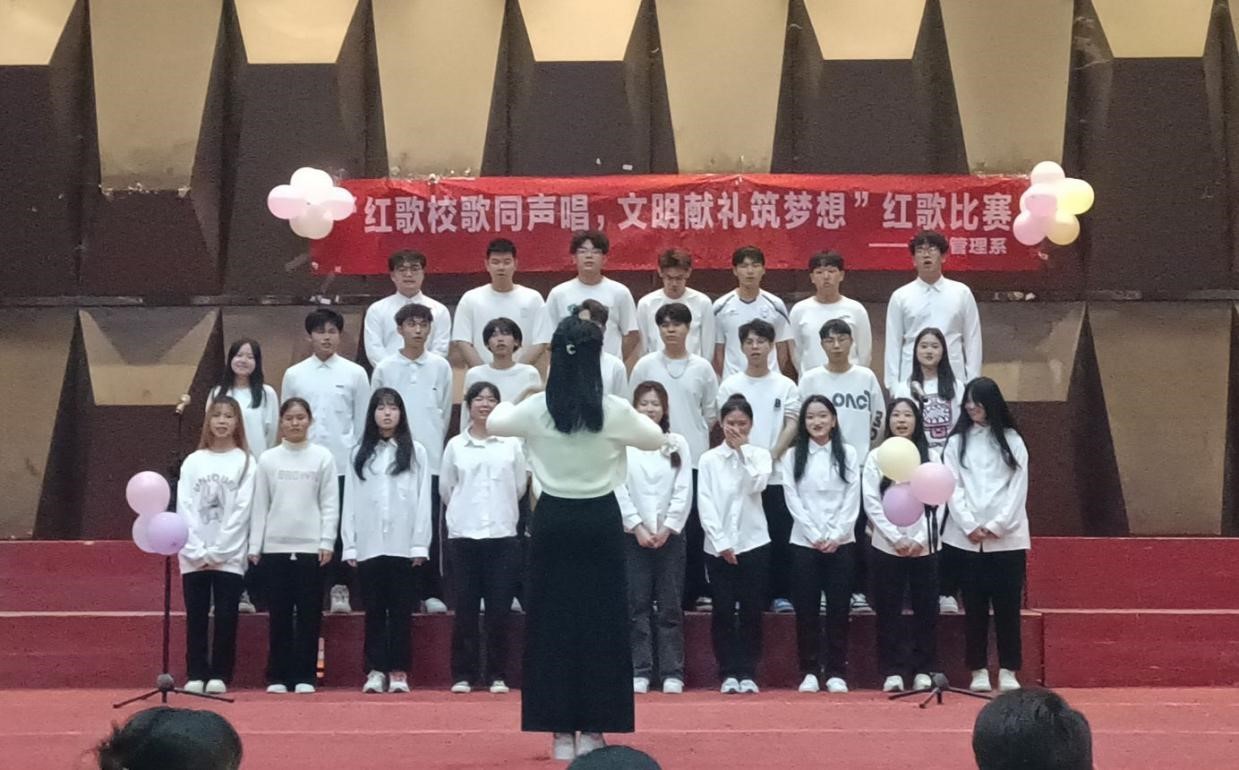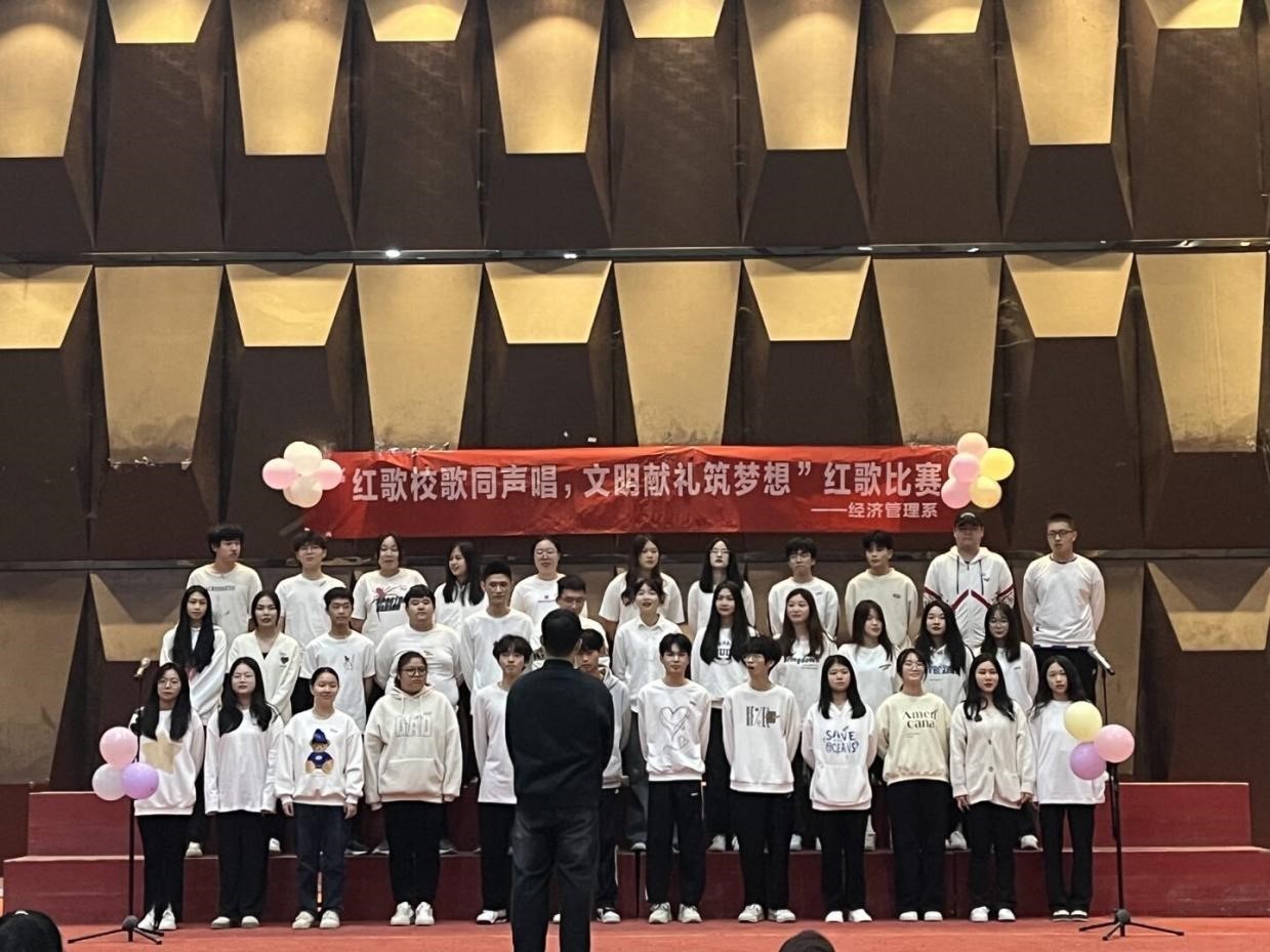 为深入学习贯彻党的二十大精神,传承红色文化,弘扬时代主旋律,展现我系学生热情、积极向上、充满活力的青春风采,同时激励广大青年学生“高举团旗跟党走”,为新时代大学生提供一个彰显班级凝聚力和团结精神的舞台,经济管理系于2023年12月10日晚在学术报告厅举办了班级红歌合唱比赛。