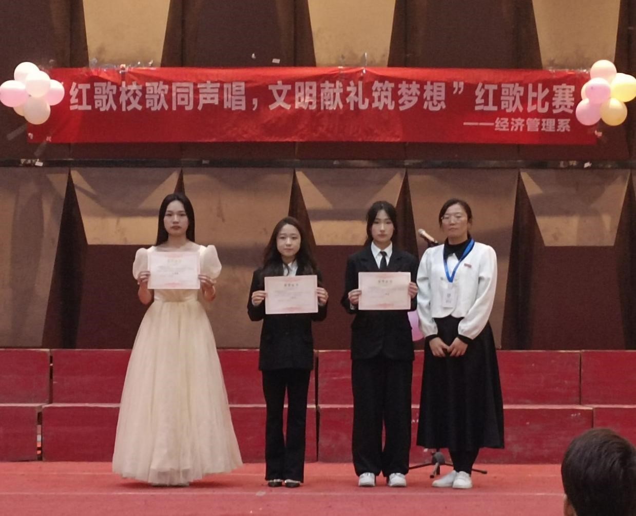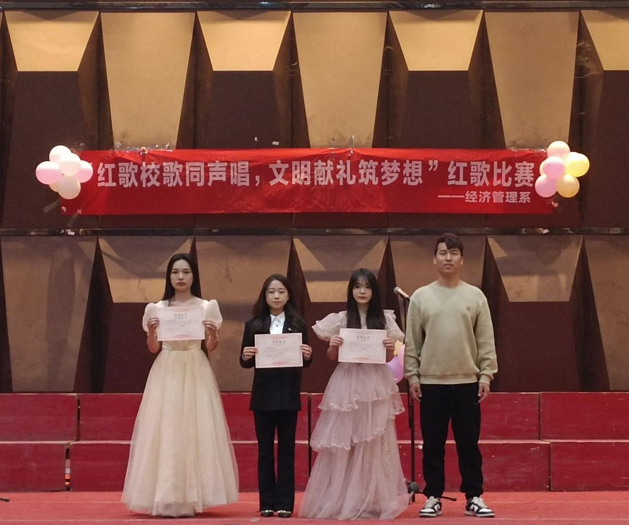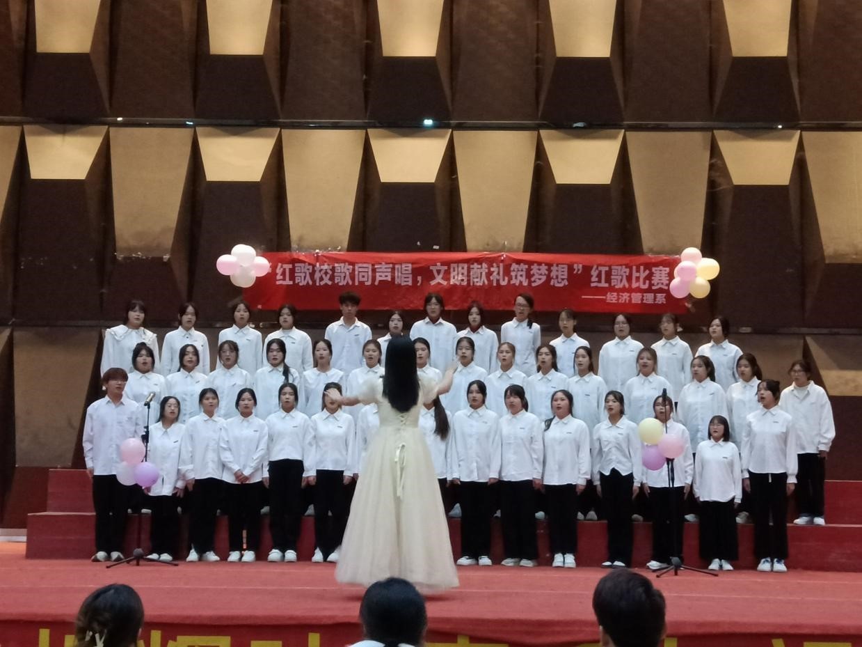 为深入学习贯彻党的二十大精神,传承红色文化,弘扬时代主旋律,展现我系学生热情、积极向上、充满活力的青春风采,同时激励广大青年学生“高举团旗跟党走”,为新时代大学生提供一个彰显班级凝聚力和团结精神的舞台,经济管理系于2023年12月10日晚在学术报告厅举办了班级红歌合唱比赛。