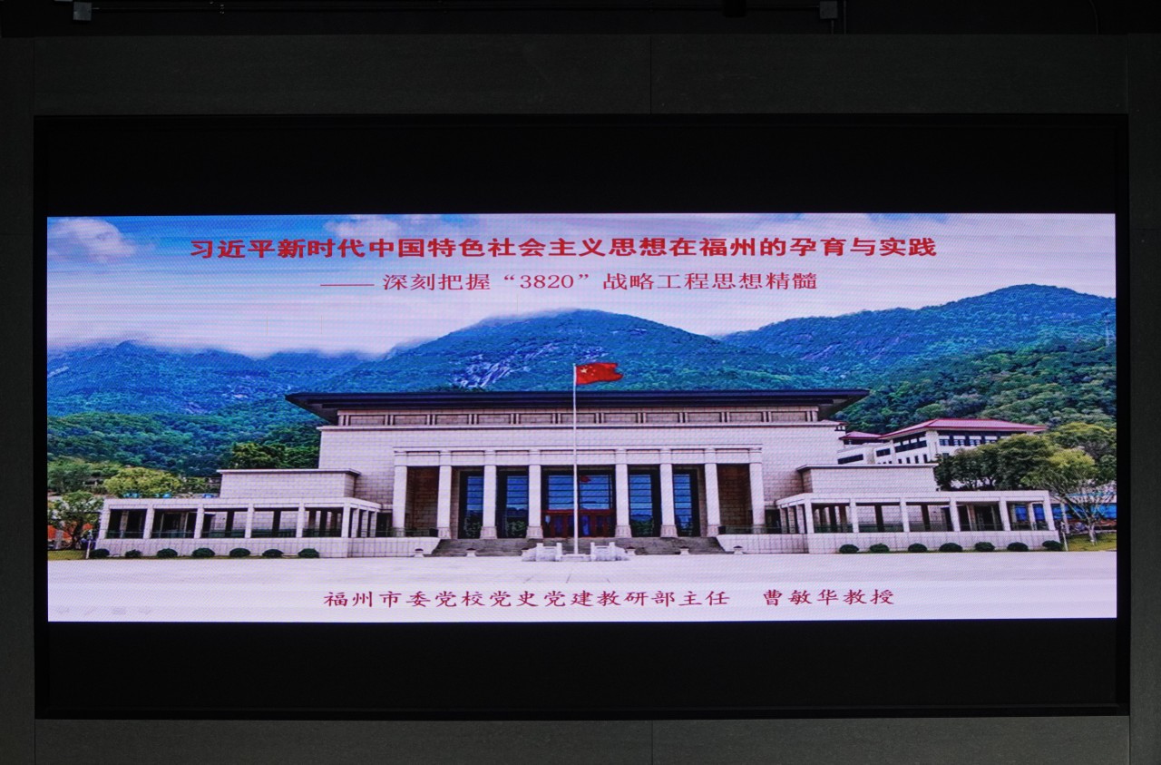 为深入开展学习贯彻习近平新时代中国特色社会主义思想主题教育,让青年学子在主题教育中感悟思想伟力、凝聚奋进力量,12月12日下午,福州黎明职业技术学院在学生活动中心举办“3820”战略工程思想精髓思政课进高校活动。福州市委党校党史党建教研部主任曹敏华教授以“习近平新时代中国特色社会主义思想在福州的孕育与实践——深刻把握‘3820’战略工程思想精髓”为题,为我院学子带来了一堂精彩的大思政讲座。本场讲座由院党委书记廖诗忠主持。