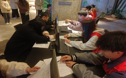 教务服务岗志愿者帮助同学办理学生证等业务信息登记