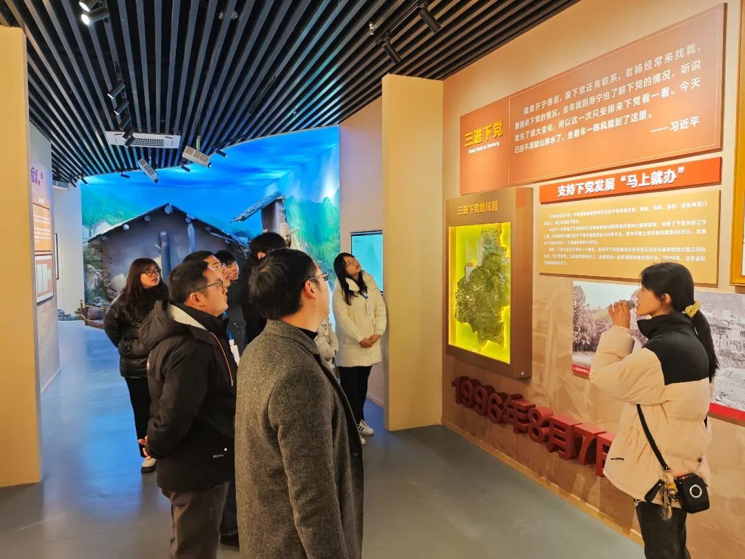 实践队来到“难忘下党”主题馆,高擎右拳庄严宣誓,重温入党誓词。在“三进下党”“摆脱贫困”“当代坐标”三部分展区九个单元中,一个个原汁原味的感人故事、一段段至真至情的场景回现、一篇篇生动详实的真情口述,生动印证了弱鸟先飞、滴水穿石的道理,为实践队还原了习近平总书记“九到寿宁、三进下党”艰辛也难忘的历程。队员们在此深切感悟了总书记念慈在慈的为民情怀以及下党人民心怀感恩、砥砺奋进的精神风貌。