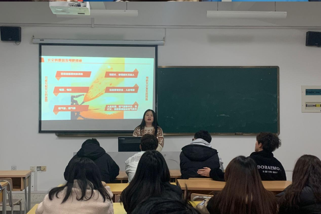 班会课上,辅导员利用图片、视频等,为同学们推送火灾案例、消防警示教育片,引导学生关注消防安全、学习消防知识;同时结合校内规章制度加强宣传用火用电安全、逃生自救等常识,进一步强化学生消防安全意识和自护自救能力。