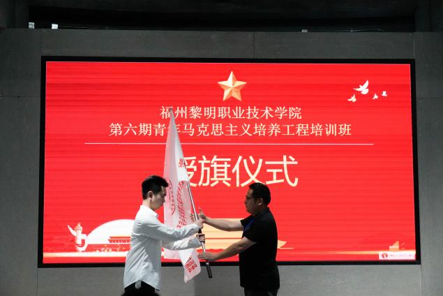 接着,团委书记陈伟伟饱含期望地将象征“青马”精神的旗帜授予第六期学员代表李文浩。飘扬的旗帜承载着同学们的梦想、使命和责任,坚定了同学们“艰苦奋斗、自强不息”的信心。在未来的征程上,同学们将擂响“青马”的战鼓,高扬“青马”的旗帜,严格要求自己,坚定崇高信仰,踏实努力学习,不断开拓创新,切实发挥青马骨干的表率作用。