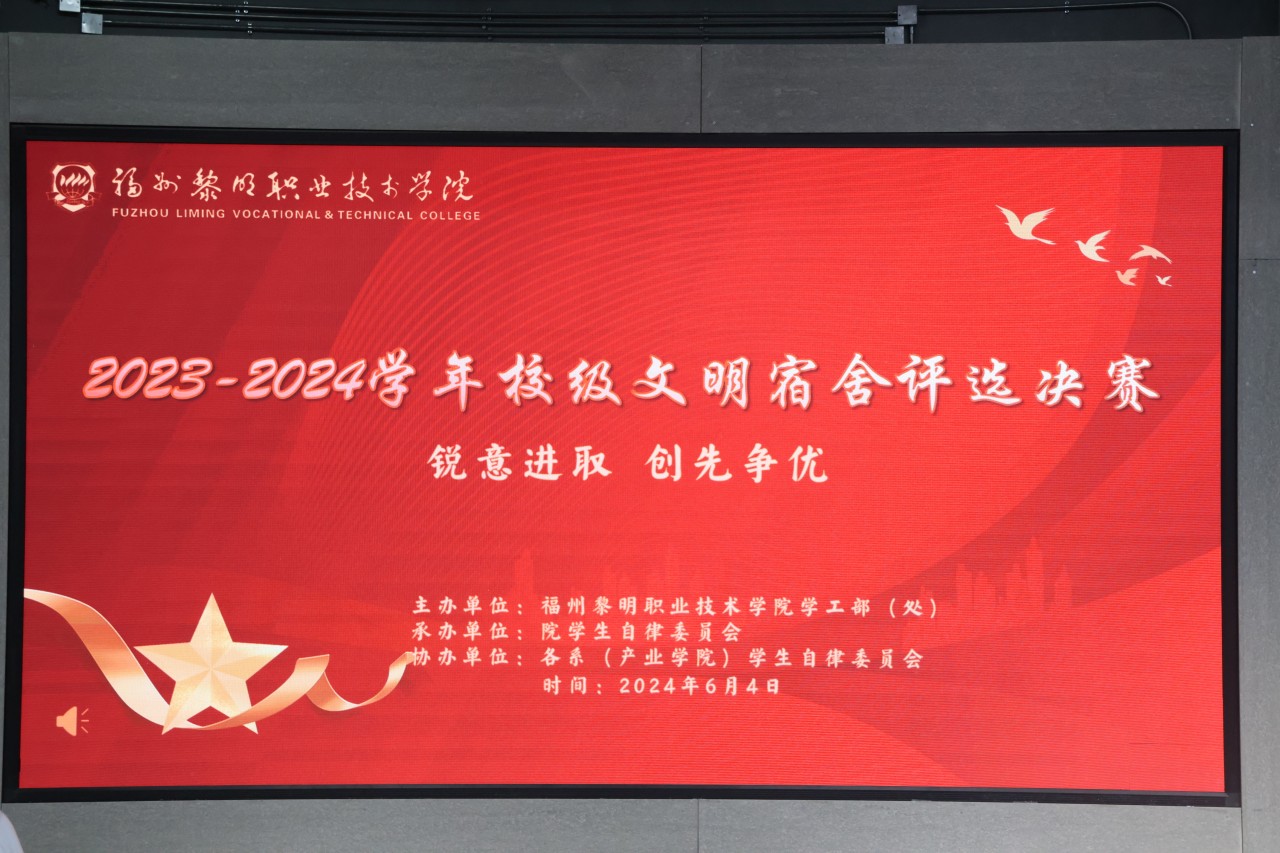 “明亮清雅之室,共建和谐新风”为了进一步加强宿舍管理,推动文明宿舍建设,打造积极向上、文明和谐、健康安全的宿舍文化氛围。6月4日,我院在圆楼举行2023-2024年度校级文明宿舍评选决赛暨表彰大会。副院长魏洪、党委副书记刘鹏、各系党支部书记、全体辅导员们出席本次比赛。学工处处长陈伟伟、总务处负责人陈丽红、学工处副处长吴映华、学工处劳动教育科科长聂计闽、学工处就业科科长黄健、总务处曾仁凯、学工处林晨育、院团委叶祖煌、学工处贾云鹏担任本次活动的评委。