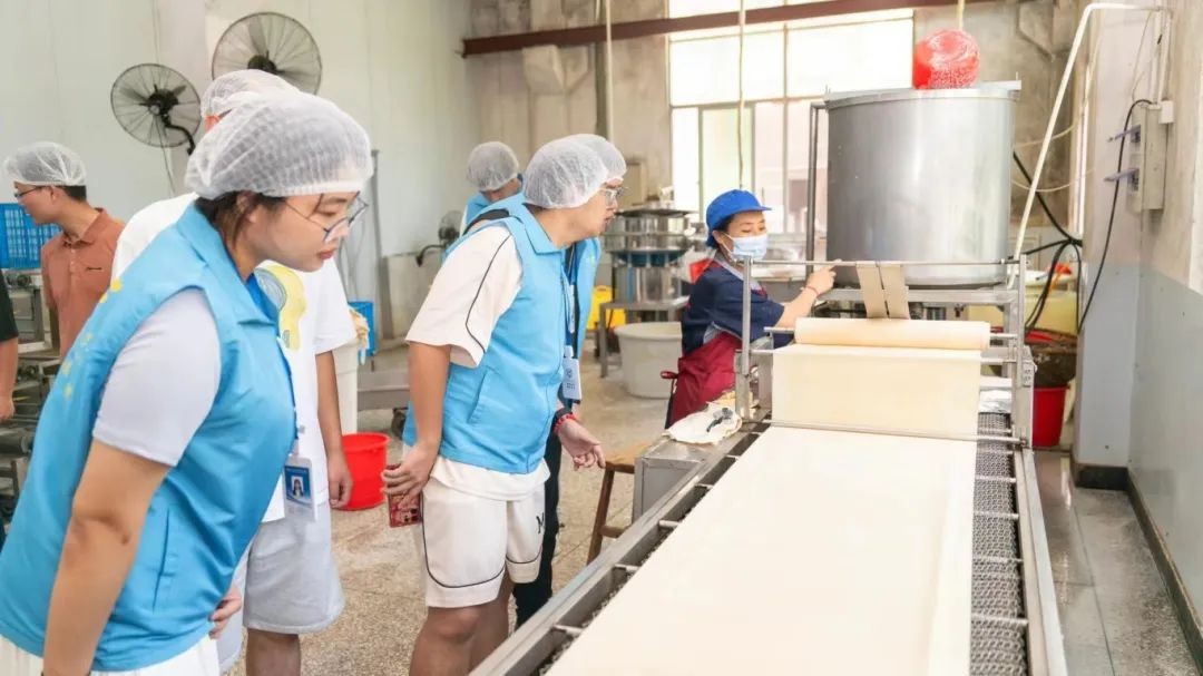 为深入学习贯彻党的二十大精神,传承红色基因,追随红色文化的足迹,感受传统生产工艺的魅力。应闽西职业技术学院城乡建筑学院团委书记陈春福及企业负责人的邀请,7月3日,我院团委书记陈伟伟带队来到长汀建丰达豆腐干工厂,一同参观学习、躬身实践。