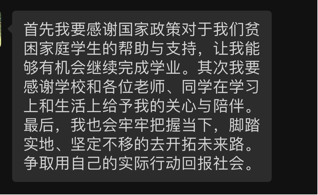 (受访学生传递感恩之情)