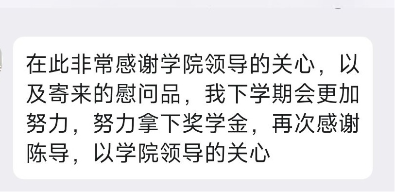 走访团队借此机会向学生家长反馈了学生的在校学习、生活情况,详细了解学生的成长环境,并向学生、家长全面介绍国家和学校的资助政策,从而减轻困难家庭家长的思想包袱;积极解答家长关于人才培养、学业规划等问题,使家长对学院的教育教学、学生管理、就业情况等有了更深的了解;同时鼓励学生们努力学习,不断提升知识素养和专业技能。受访学生及家长们纷纷对国家及学校的关心和帮助表达了真挚的感谢。