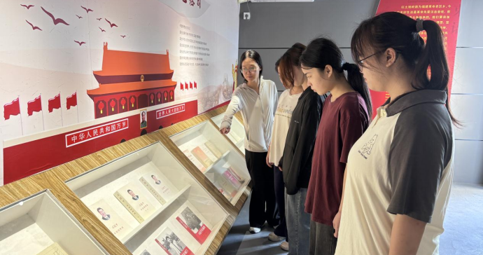 习近平总书记在福建福州工作期间,曾14次深入永泰县调研指导工作,留下了许多宝贵而丰富的思想和精神财富。红色文化广场便是以习近平新时代中国特色社会主义思想为指导,以红色文化长廊建设为抓手,与“不忘初心、牢记使命”主题教育精神、绿色生态优势、红色文化底蕴相结合,设计了“不忘初心 牢记使命”、“不忘初心 牢记嘱托”、“不忘初心 情系老区”3个篇章,从全国、福建、永泰三条线路全方位回顾了从1989年到2019年习近平总书记的“红色足迹”。实践队队员们游走在这片广场上,五星红旗随风飘扬,仿佛是在将那段饱经沧桑的岁月娓娓道来。