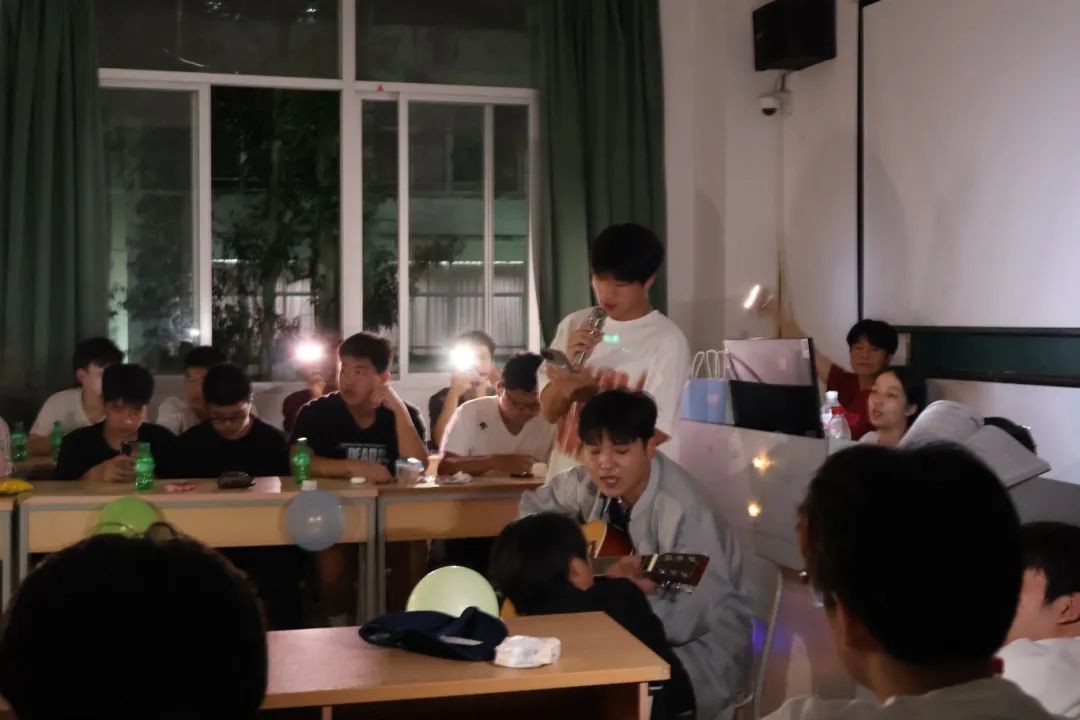 当夜幕降临,灯光璀璨,整个温馨布置的教室洋溢着快乐、喜庆的氛围。新同学们怀着对大学生活的憧憬与期待,踏入这个充满温暖与活力的空间。