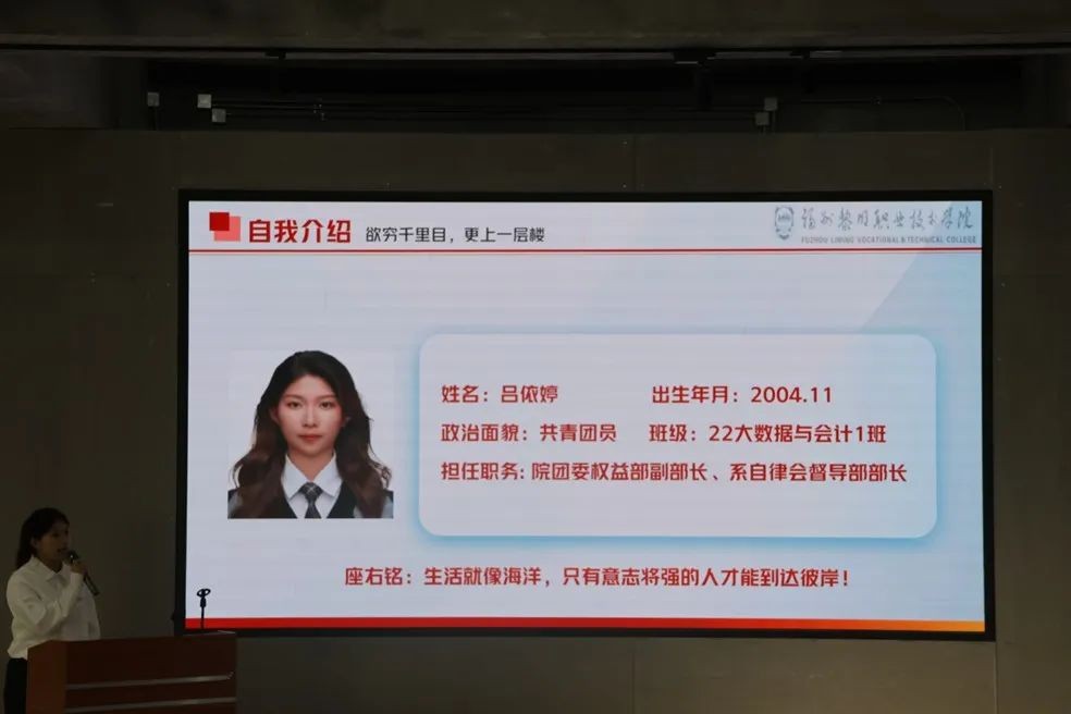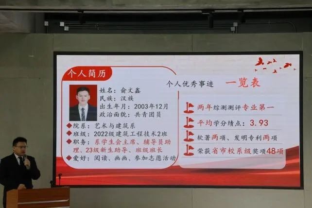 经过个人自主申请、系部(含产业学院)初步评审以及学生资助管理中心的严格审核等一系列流程,俞文鑫、郭永辉等9位杰出学子凭借其卓越表现脱颖而出,成功晋级至现场评审阶段。在答辩会上,这9位候选人通过精心准备的PPT演讲,逐一展示了他们在专业学习、科技创新、社会实践、综合素质以及榜样引领等多个维度的成就与风采。现场评委根据每位候选人的答辩表现,逐一进行了细致的提问,并给予了相应的评分。