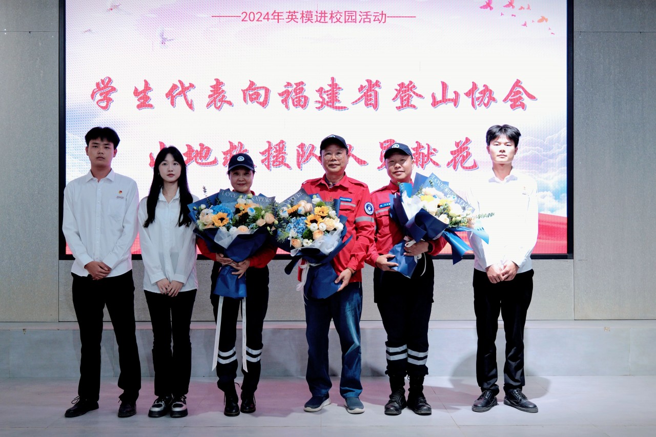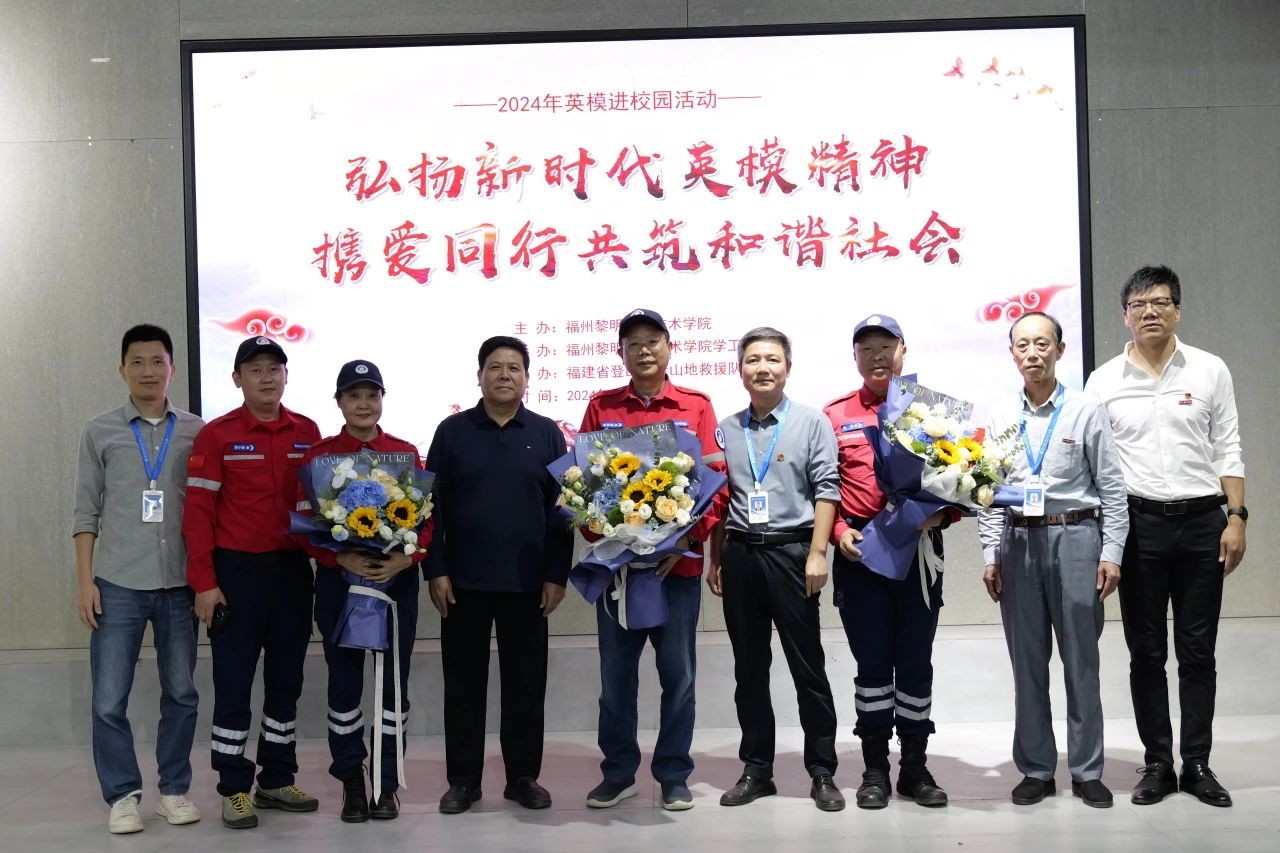 为了深入学习贯彻习近平新时代中国特色社会主义思想和全国教育大会精神,弘扬新时代志愿者精神,将社会主义核心价值观融入“爱的教育”,推动学校思想政治工作守正创新。10月30日下午,福州黎明职业技术学院联合福建省登山协会山地救援队,在地球村校区圆楼学术报告厅成功举办2024年“英模进校园”活动,为全校师生献上了一堂生动的思政教育课。